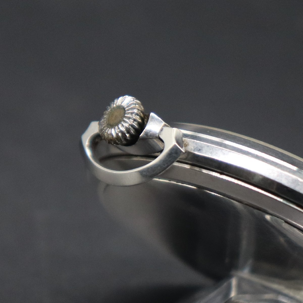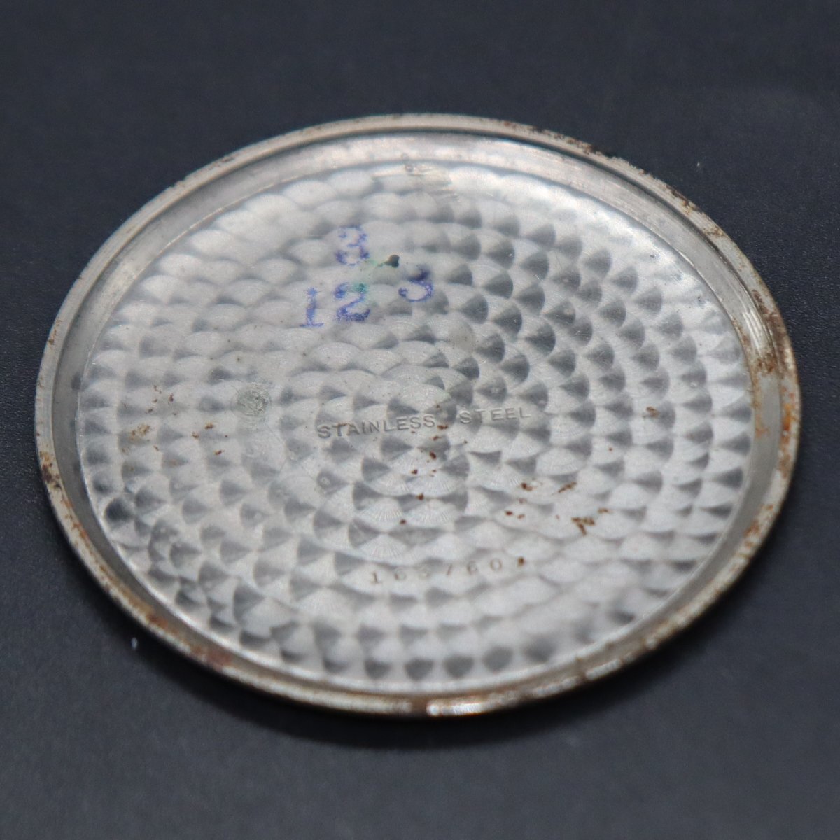 不動のため、ジャンクでの出品とさせて頂きます。 リューズを引いて針が回ることのみ確認済みです。 他、機能詳細は全て未確認です。 古い時計ですので、全体にキズや打痕、文字盤にチリなどの汚れ、 針に小傷みございますが、風防はとくに大きな損傷はございません。 ケース裏に凹みがございます。 ジャンクとして出品しておりますので、 状態については全て画像にてご判断願います。 |