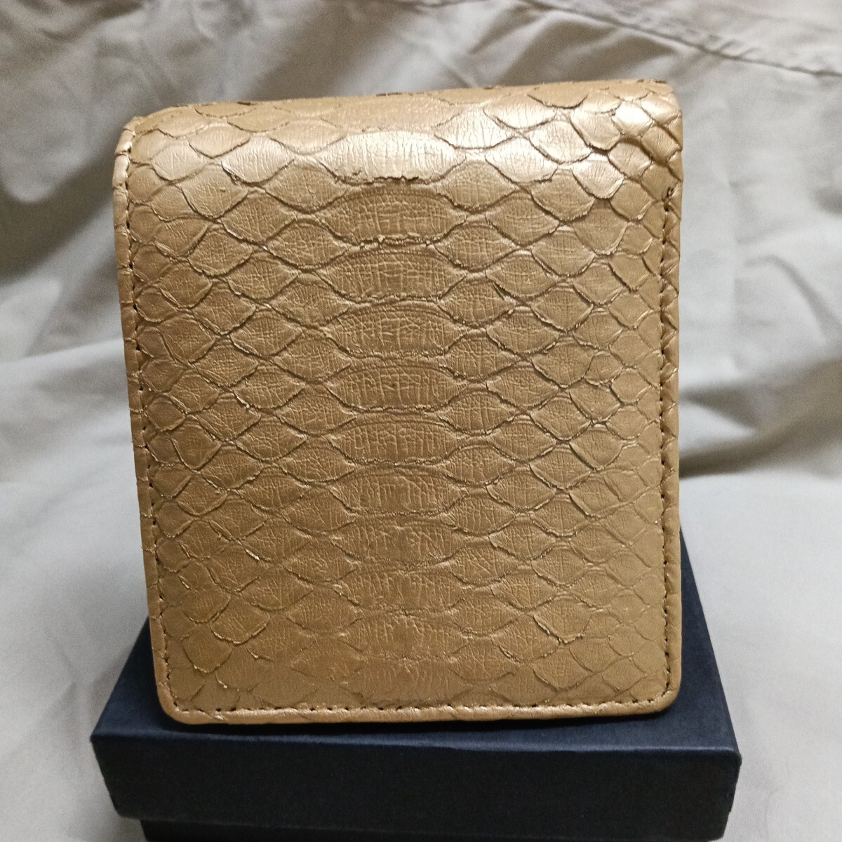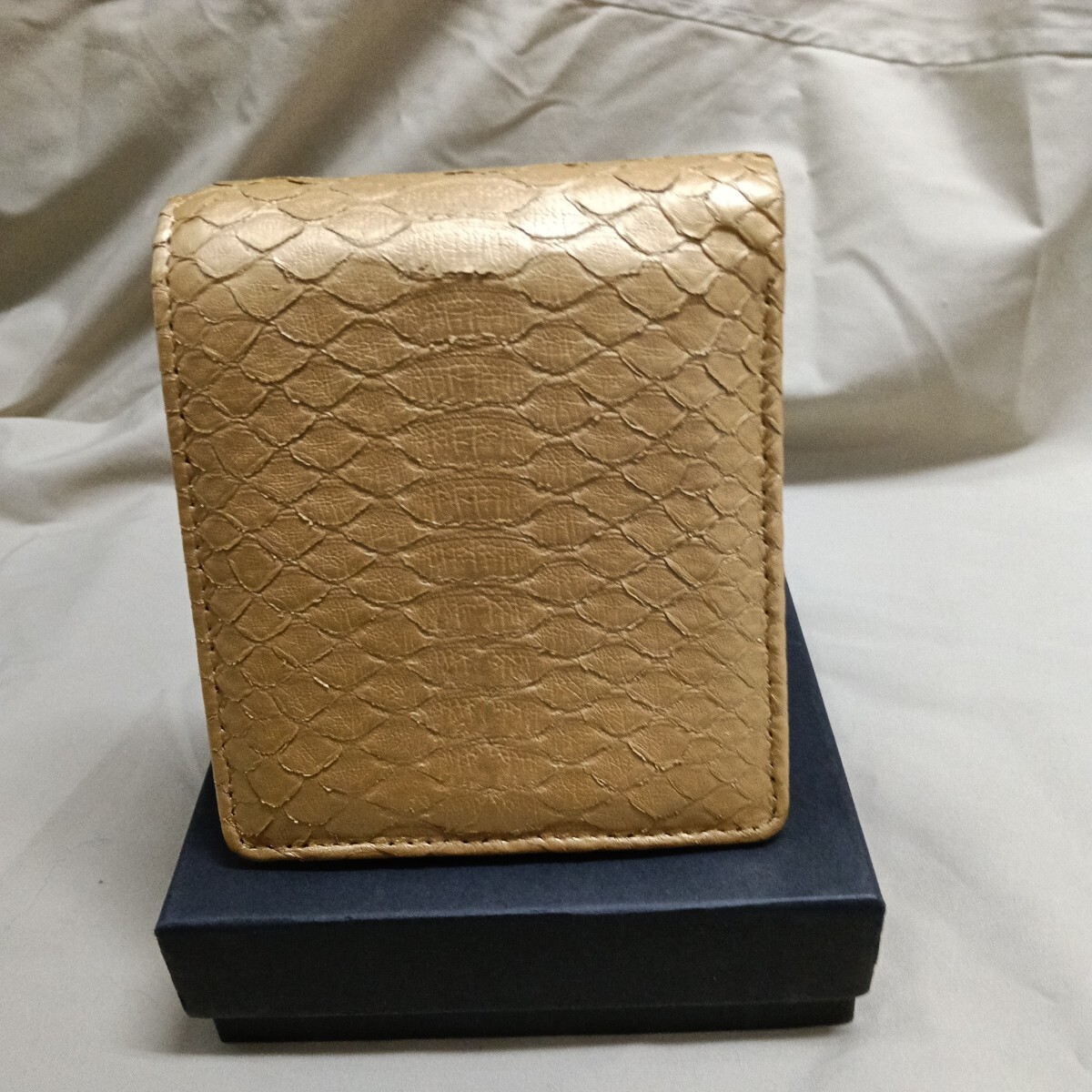 商品に興味をもっていただき、ありがとうございます。新品未使用 ニシキヘビ 札入れです。 表側は ニシキヘビ皮、裏側は牛皮です。大きさは 縦約11.5cm 、横 約10.3cm 、札入れ 部分 3箇所 、カード入れ 4箇所 、ポケット 2箇所 、ホック付き小銭入れ 1箇所です。 カラーはゴールドです。ヤマト運輸宅急便で発送致します。運賃は全国一律1000円ですが北海道は1200円沖縄は1300円離島は別料金です。| 出价者 | 信用 | 价格 | 时间 |