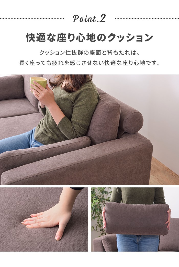 | 大きめサイズでゆったりとリラックスができるカウチソファ。 生活スタイルに合わせた自由なレイアウトでお使いいただけます。 |