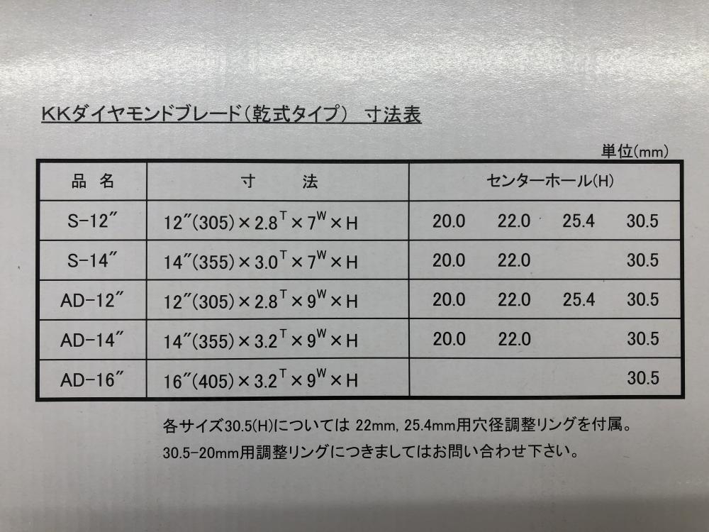 関西工具製作所 ■商品名 乾式ダイヤモンド・ブレード ■型番 S-12(305mm)×25.4H |