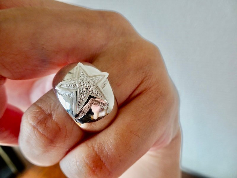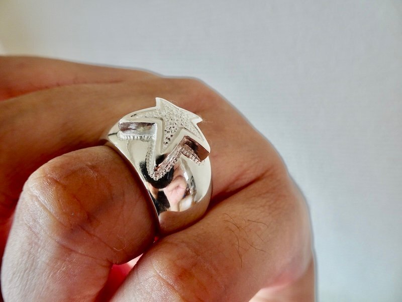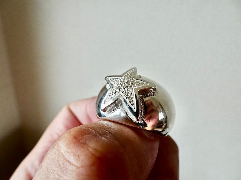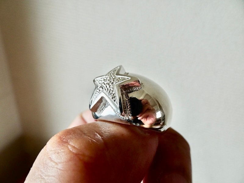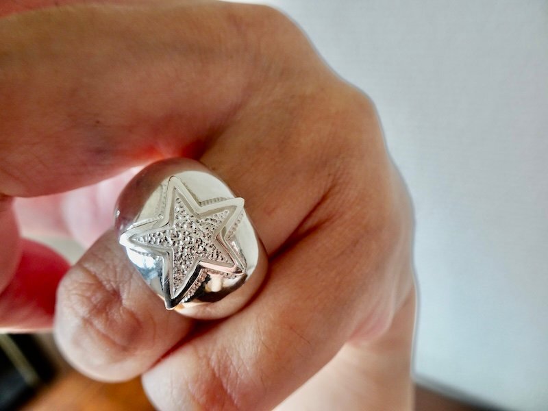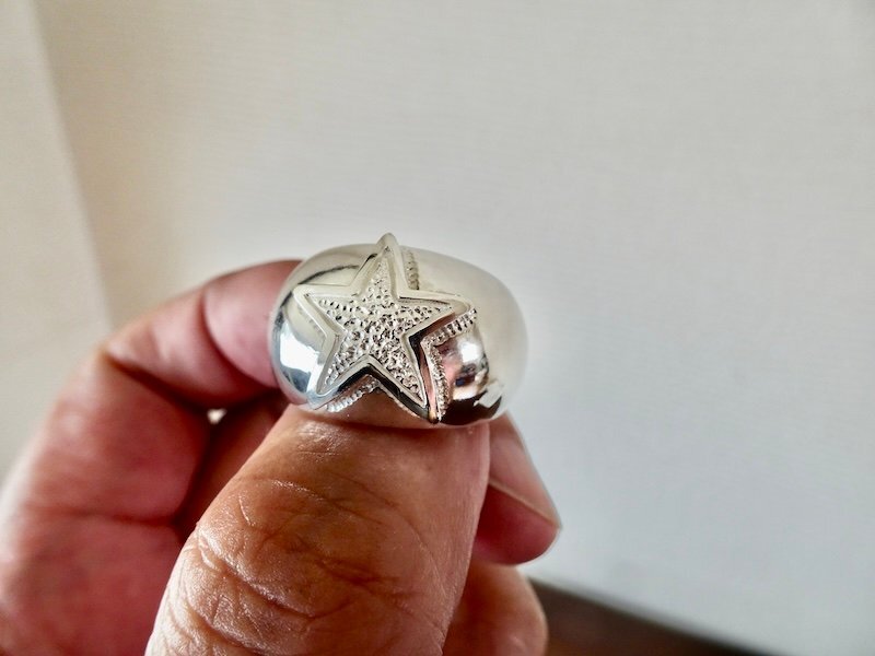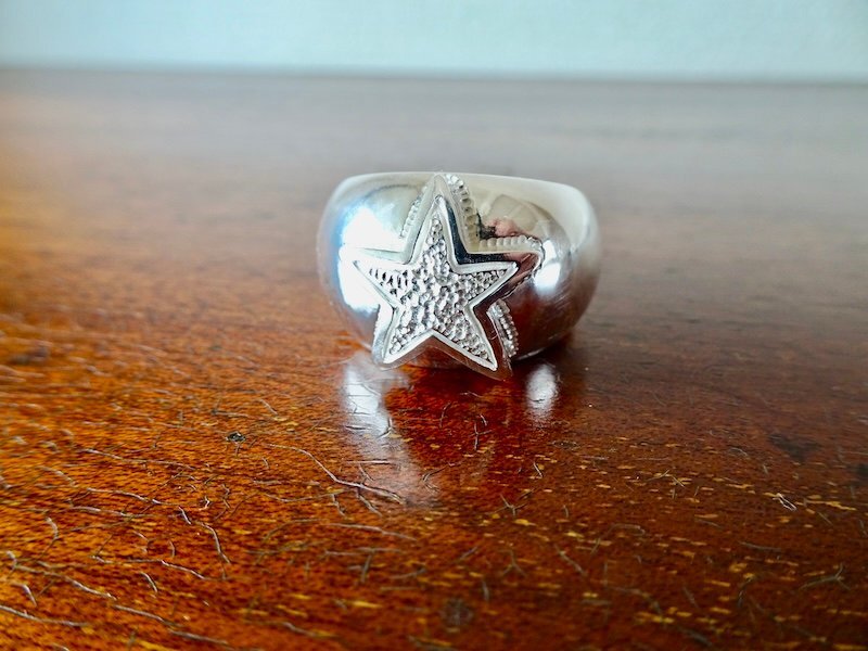 ごらん頂きありがとうございます。 オリジナルブランド 仁尾彫金『プラチナ、ギャラクシースター甲丸リング』を出品致します。宇宙をテーマにしたアクセサリーをオリジナルで自ら制作しています。今回、甲丸リングを制作致しました。そこにスターのモチーフを立体的に造形致しました。スター内部には輝く星をイメージした凸凹のテクスチャをいれています。最大幅は約1.5cm、最大厚みは約8mm強です。全てプラチナの塊で重量も約48gとpt900をズッシリとしっかりとした作りになっています。全てプラチナの塊なので変色する事はありません。オリジナリティを追求しデザイン、制作を私自身で行っている為、今回、新品をご用意致します!! *こちらの作品につきまして10号から30号まで制作可能でございますm(_ _)m。 *こちらの作品につきまして制作に3週間程度かかります。m(_ _)m プラチナ900 約48g (pt900刻印あり) ご質問等ございましたらお気軽にaerothmith@mac.comへご連絡下さい。m(_ _)m 金プラチナにつきましてはフルオーダー制作も承っていますので、ご質問等ございましたらお気軽にaerothmith@mac.comへご連絡下さい。m(_ _)m その他も出品していますのでご覧下さい。m(_ _)m *インスタにて仁尾彫金で制作状況を掲載していますのでお気軽にご登録をお願い致します。(^-^) |