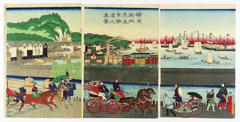 題名 横浜新地蒸気車鉄道之真景 三枚続