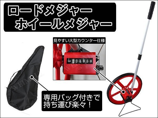 | 軽量でとってもコンパクト! グラウンドの測定、下水工事の配管測定 道路の距離測定、駐車場の区画整理などに ロードメジャー・ホイルメジャー ◆折りたたみ式なのでとってもコンパクト!収納場所にも困りません。 ◆大型ホイールを採用!安定性も問題ありません。 ◆スタンド付なので、一輪車の状態で立てておくことができ便利です。 ◆キャリングケース付!持ち運びや保管に便利です。 【商品仕様】 本体サイズ(約) 全長950㎜m/縮小630mm 測定距離 99,999.9m 測定桁数 5桁 表示単位 10cm 車輪円周 1,000mm |