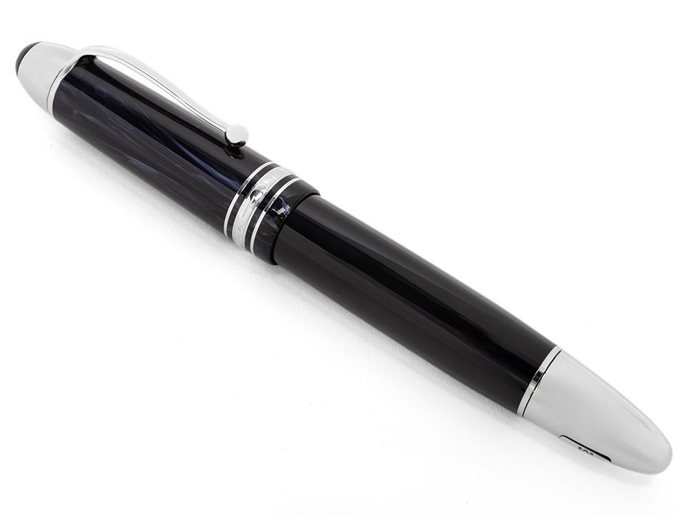 商品は2024年12月に市内の文具専門店にて購入された物で、当店の質流れ品となります。特に目に付くキズや汚れなど見当たらずキレイな状態ですが、未使用品ではありませんでしたので、ペン軸には光にかざすと見える程度の若干の線キズがあります。展示品程度にお考え下さい。入っていたインクを洗浄してから試し書きを行い、再度洗浄しています。写真では見えにくいですが、本体軸とキャップ部に薄っすらとマーブルのような模様が入っています。