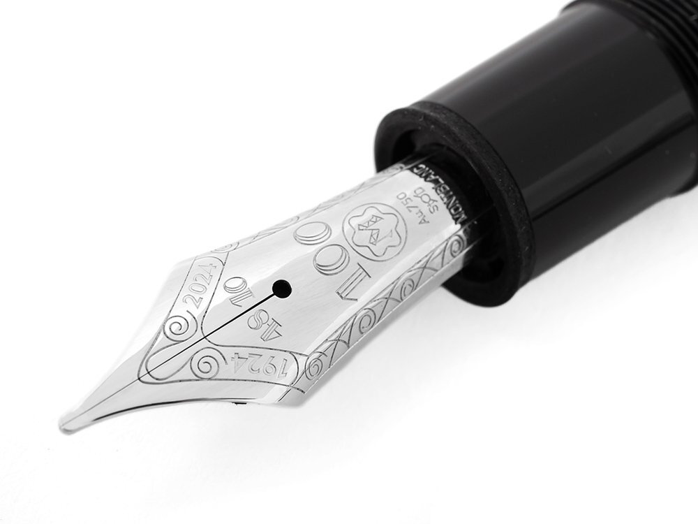 ブランドの豊かな歴史とヘリテイジに敬意を表するジ オリジン コレクションとして、マイスターシュテュック100周年記念のマイルストーンを記念して2024年に発売された万年筆、オリジン コレクション 149「MB131336」です。アーカイブに残されていた初期のデザインや、マイスターシュテュックの最初期のエディションに見られるデザインの特徴に着想を得て、モダンなアプローチを加えながら創業の精神を表現しています。 ブラック プレシャスレジン製のキャップにあしらわれた流麗なパターンは、初期のデザインにインスパイアされたもの。紙の上で溶けてゆくインクを表現したデザインが、プラチナ仕上げのフィッティングとエレガントなコントラストを生み出します。 |
