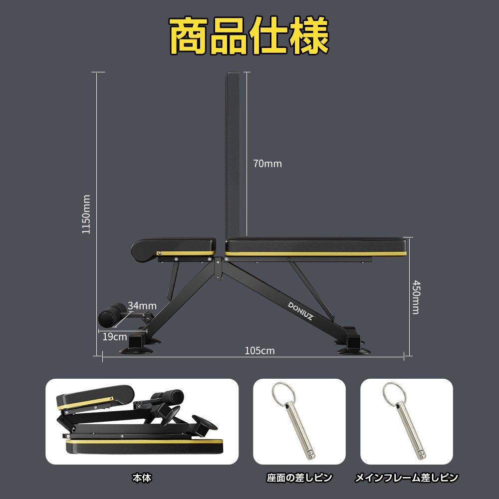 ◆【商品内容】: 折り畳み式 トレーニングベンチ 重量:約12kg 耐荷重:350kg フレーム素材:スチール ◆【商品特徴】: ・二重調節:背中クッションは8段階調節可能で、座面は3段階調節か可能。角度設定に迷わない、ご好きな角度を選択可能です。 ◆【一体型で組み立て不要】: 製品本体を開き、ロックピンを差し込むだけで取り付け完了です! ◆【安心の耐荷重350kg】: 高重量のダンベルやバーベルトレーニングに対応 ◆【折り畳み式】: 収納時に便利な折り畳み式 ◆【滑り止め足付き】: 滑り止め足付きで、もっと安定感あるディザイン 【保証】 ◆当商品は12っヶ月保証となります。 ◆お届けから1週間以内にご連絡のあった不良品の保証対応の送料は当方が負担いたします。 ◆保証期間内の不良品ですが、交換のみ対応しております。往復送料はお客様負担となります。在庫がない時だけ返金しますので、ご了承ください。 |