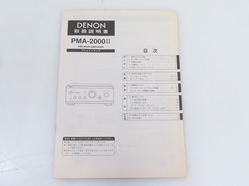 ■メーカー : DENON ■型番 : PMA-2000II ■外径寸法 : W434×H180×D478mm ■重量 : 22kg 【商品の状態 当店での確認内容】 基本動作確認済み 「商品の状態」に関しましては当方主観の目安となります。外観などは中古品で個人差もありますので詳細は画像にてご判断ください。 画像にて不明な点はご質問下さい。 出品商品は画像のものですべてになります。画像に写っているもの以外は付属いたしません。 ※注意※ のシステム上、送料表記が送料未定となっておりますが、送料に関しては全て有償となりますので下記を参照下さい。 【送料 全国一律 2,980 円 沖縄、離島は別途お見積り】 ※送料がお得になるサービスです(下取りシステムのご案内です) ストア決済利用時にクレジットカードやPayPay残高/PayPayクレジットを利用の方は留意点がございますのでこちらを参照上ご利用ください。 当ストアでは商品を安全にお届け出来るよう提携運送会社と協議の上、発泡緩衝材や強度段ボールの使用等 運送会社が指定する梱包方法や資材を採用しております。 より安全にお届け出来るよう商品仕様により梱包サイズが大きくなる場合や個口数が増える事がございます。 【当ストアオークションルールを入札前に必ずご確認ください。】 【落札後の取引手順】 ・落札後は取引ナビにて、必要事項をご入力後、送信ください。 取引終了後48時間(土、日は除く)以内に入力をお願い致します。 ※ご連絡が頂けない場合は落札者様都合でのキャンセルとさせていただきます。 ・落札代金(商品代金+消費税+送料)の入金をお願い致します。 ※大型商品の場合は送料確定後の決済となる為取引ナビを入力頂き、当ストアより送料のご案内が来るまでお待ちください。(土曜、日曜、祝日の場合は翌営業日より順次ご案内いたします) ・お支払い方法はクレジットカード/PayPay残高/PayPayクレジット/PayPay銀行/ゆうちょ銀行のみです。 ※商品代金引換(代引き)のお取り扱いはしておりません。 ※領収証の発行が必要な方はご連絡ください。 ※銀行振込の際の振込手数料はご負担願います。 ・入金確認後に出荷手配を致します。 (原則入金確認後3営業日以内に発送いたしますが、大型や重量のある製品はお時間をいただく場合もございます。) ・発送は当店指定の運送会社の元払いのみでの発送となります。 ※他の運送会社、送料代引き等は致しかねます。 ※落札者様ご自身での運送会社の手配いただく事も可能ですが荷物事故の責任の所在の問題上、梱包は致しかねます。 ※店頭にお越し頂き手渡しも可能(福岡市早良区)です。ご希望の方はご落札後にご連絡下さい。 ・大型/重量物商品の送料につきましては商品の特性上、荷降ろし状況等により送料が大きく前後し運送業者に別途見積りが必要な為、早めのお問い合わせにてお見積り上、入札をお願い致します。 【初期不良の保証について】 ・商品到着後の初期動作不良、また配送中の事故による破損、不具合が有る場合は、商品発送後10日以内に当ストアまでご連絡ください。当ストアでは修理での対応を優先させて頂きますが、修理不可の場合は全額返金させて頂きます。 (商品代金+消費税+送料のお支払い頂いた金額となります) 【初期不良の保証の対象外について】 次の場合は保証の対象外となりますのご留意ください ・ジャンク商品、現状商品、難あり商品での出品商品。 ※難あり商品に関しましては動作確認時に一部動作不良が確認された商品になり、記載している動作確認以外にも、動作不良がある可能性もございます。こちらに関しましても保証対象外となりますことをご理解ください。 ・年代物のオーディオなどで、当店にてわからない範囲で部品が交換されている場合 ・楽器類の特殊機材(マイクロスコープ等)での確認までは行っておりません。気になる方は事前にご質問いただくか、入札をお控えください。 ※初期不良に関しましては【商品の状態】に記載のもの、またそれによって起因する動作不良は対象外です。 ※商品発送後10日を過ぎてのご連絡は対応が出来ませんので、商品が到着しましたらお早めに確認をお願い致します。 【メーカー保証の加入・継承】 ・未使用品、展示品やメーカー保証期間が残っている商品に関しまして、メーカー保証の加入、継承が必要な方は、落札後取引ナビ内にて当ストアにお知らせください。商品発送までにご連絡いただけない場合、メーカー保証の手続きを承れない場合があります。 【評価について】 ・評価不要の場合、必ず取引ナビの「要望欄」にてお知らせください。それ以外でご連絡をいただいた場合、対応できない可能性がございます。一度行った評価はシステム上取り消しが行えませんのでご了承ください。 【入札削除・キャンセルについて】 ・入札後はトラブル防止の為いかなる事情がおきましても入札を削除等は致しておりません。 ご検討の上入札をお願い致します。間違った際の入札額の金額訂正はご自身で行ってください。 入