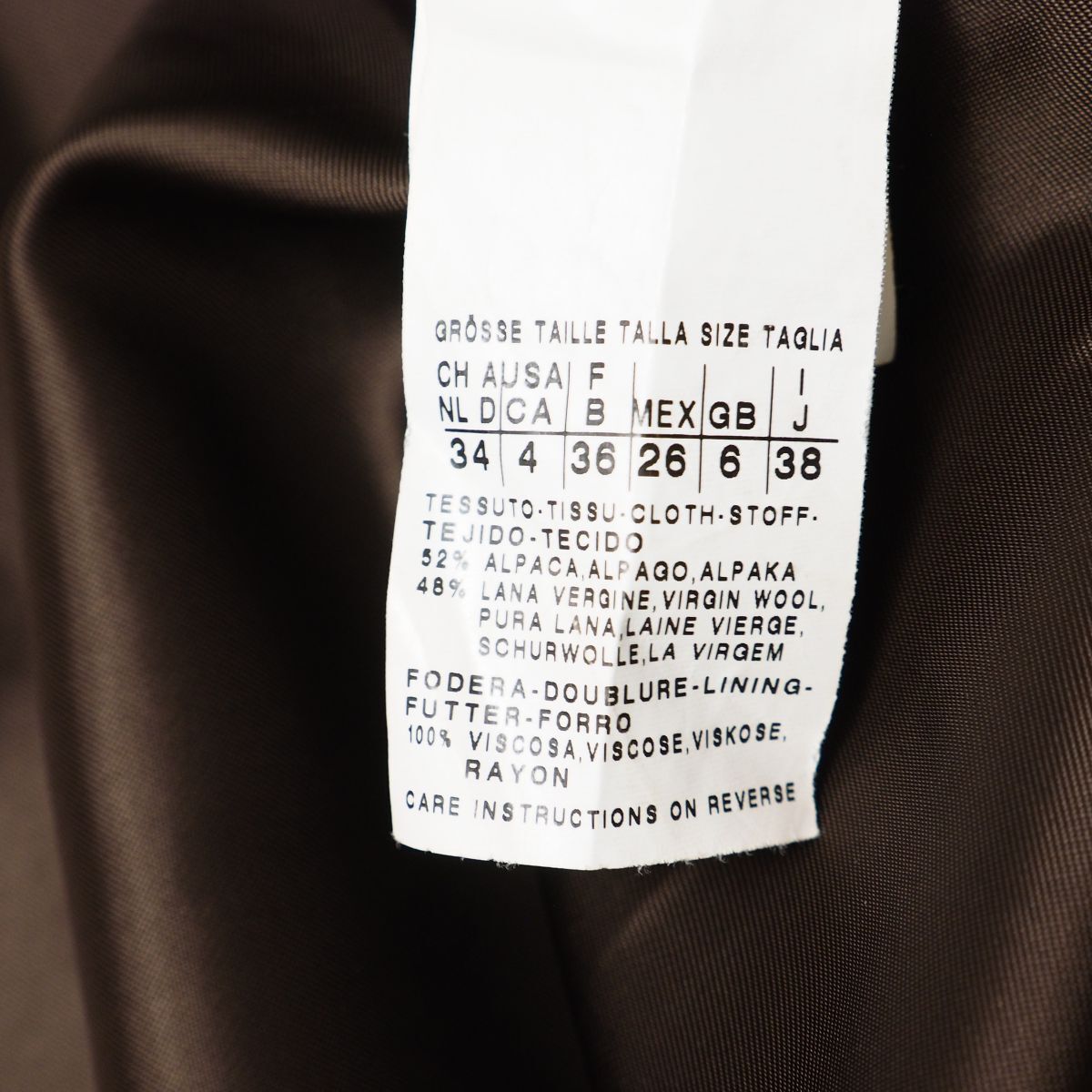 | 素材 | 表地:アルパカ52%、ウール48% 裏地:レーヨン100% |