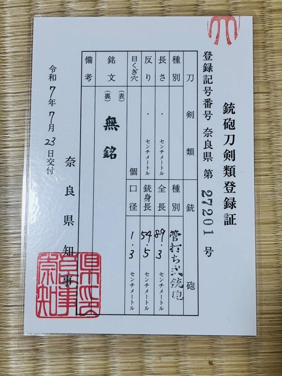 | 名品珍品管打ち式銃砲【全長89.3cm銃身長54.5cm口径1.3cm】江戸時代末期/柳生の里より旧家蔵出し品/定価18万/登録証付売切 |