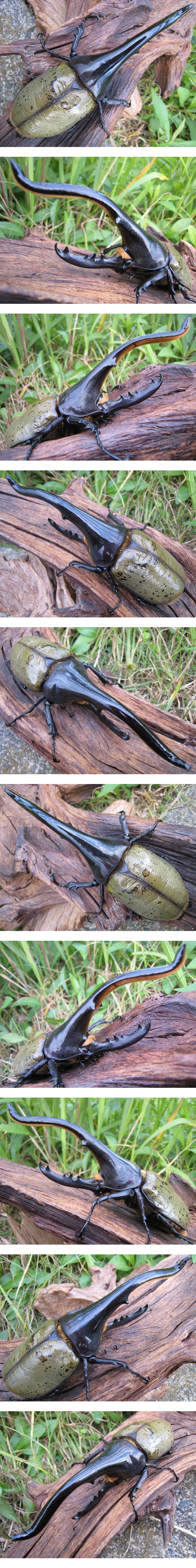 ※ 計測方法は、虫を平らな所に置き、ノギスにて計測し、胸角~上翅末端までの最大値約134mm、お尻までの最大値約135mm