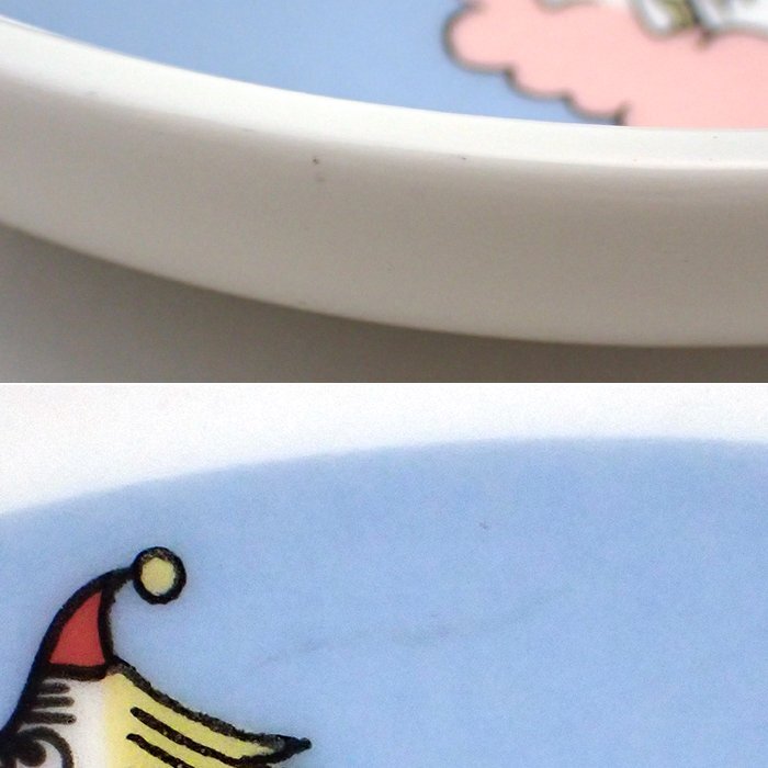 | コメント | ARABIAのムーミン フライングムーミン プレート。 空にふわふわ浮かんでいるムーミン。フローレン、ムーミンパパ、ムーミンママ、ミイ。淡いパステルカラーの可愛いデザインです♪ すでに廃盤になっているムーミンのキッズシリーズなのでコレクターの方にもおすすめです! | ||