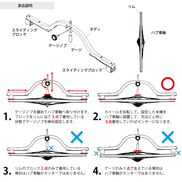 ホイールのセンターを測定するツールです。 ハブ車軸ホイールの中心に正しく配置されているかを確認できます。 ・自転車全般、ロードバイク、マウンテンバイク、クロスバイク、ミニベロ等の ホイールのセンターの測定。新車の組立て、再組等でご使用頂けます。 ・700c/20~29インチまでのホイールの計測可能。 ・リムに触れるスライディングブロックはホイールに合わせて調整できます。 ※本機はホイールのセンター測定用のツールです。 本機使用手順以外で使用された場合は精度が失われますので 測定以外での使用はしないで下さい。 サイズ:高さ16 x 幅69 cm 対応サイズ:700c/20~29インチ 重量:500g |