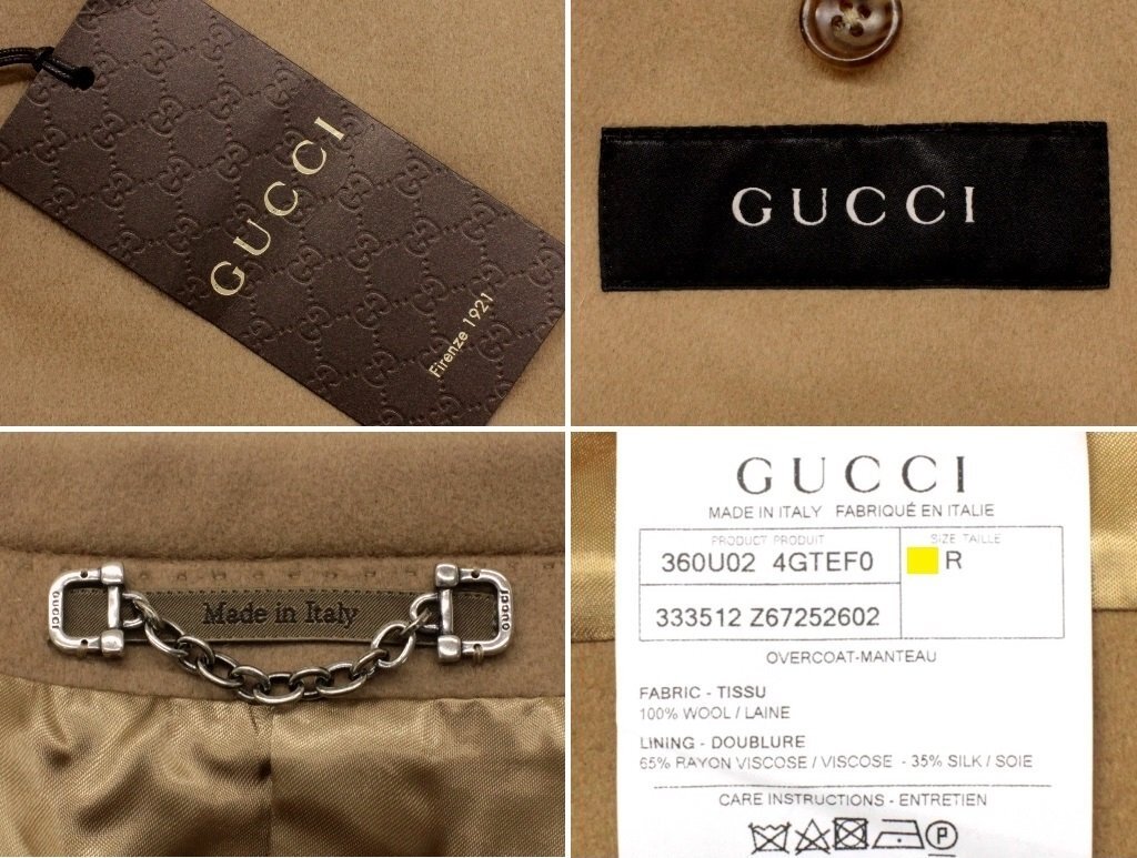 75万新品◆46=S◆GUCCI グッチ キャメルベージュウールチェスターコート