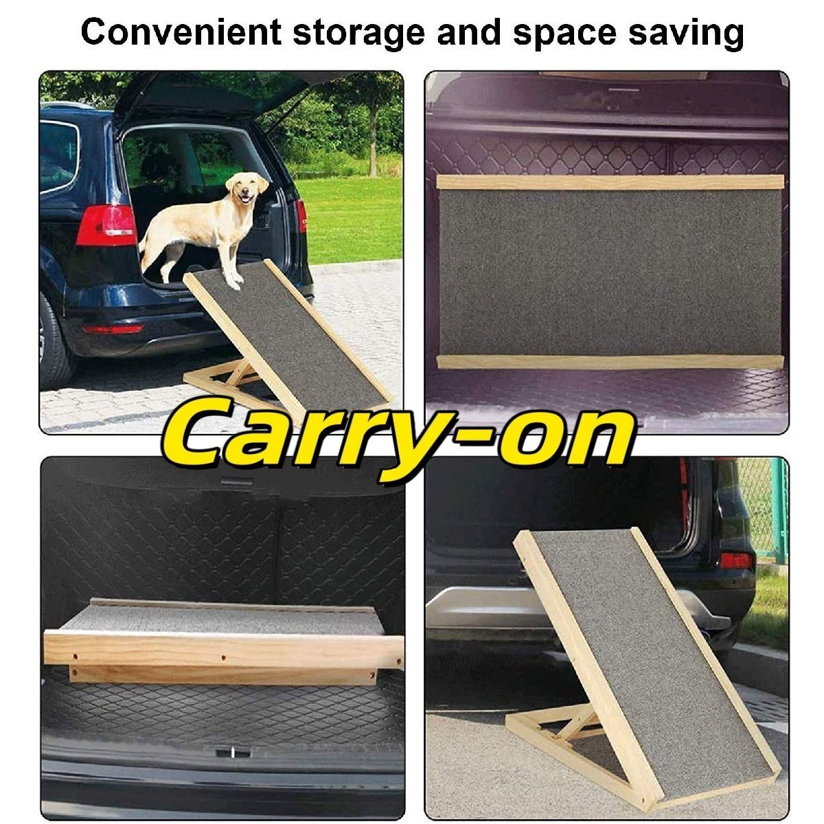?安定した構造:ペット用スロープは、握りやすい滑り止めのカーペットと耐久性のある無垢材のフレームでできています。構造は安定しており、最大耐荷重は60kgです。 ?滑り止めランプ:濡れても表面が滑りにくいので、犬は安心・安全に過ごせます。上げられたガイドレールはあ| 色 | グレー、ウッド |