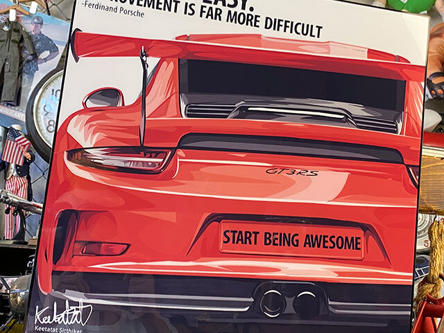 ヨーロッパやアジアを中心に支持される人気アーティストによる作品で、ポルシェがテーマに扱われた作品なんです。