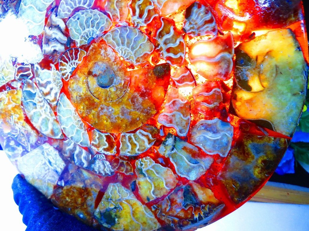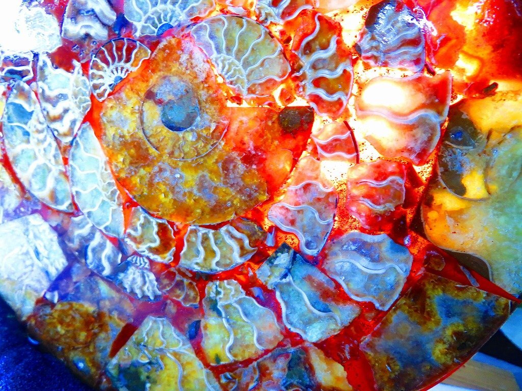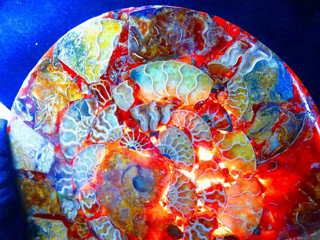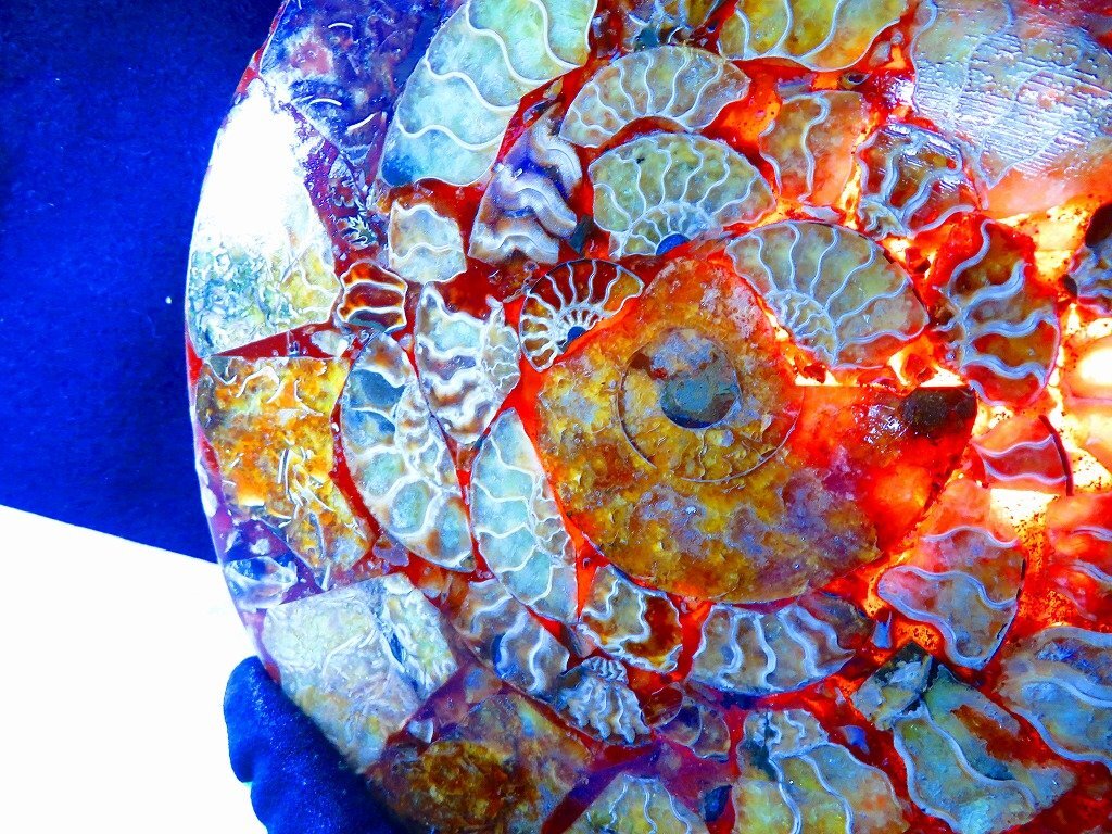 | 最大約:260mm 軟体動物頭足類の化石動物。古生代のデボン紀に出現し,中生代の白亜紀まで繁栄した。現生のオウムガイに近縁で,平面的に巻いた螺旋(らせん)形の殻をもち,直径2センチメートルから2メートル 以上まで種類が多い。海生で,種としての存続期間が短く,分布が広いので,示準化石とされる。 約1億4500万年前から6600万年前の中生代白亜紀の間を生きたマダガスカル産アンモナイトはオパールの様な虹色の色彩を持つ保存状態の極めて良い化石として世界的に有名です。 化石になってからもなお美しい輝きを放つ絶景にも似たアンモナイトの奇跡には自然 の神秘を感じざるを得えません。 世界中にふたつとないひとつだけの一品をコレクションとして、またお子様の教材としてご鑑賞頂ければ幸いです。 | |||