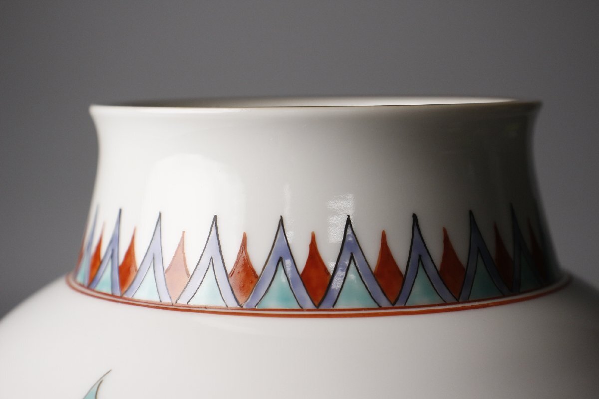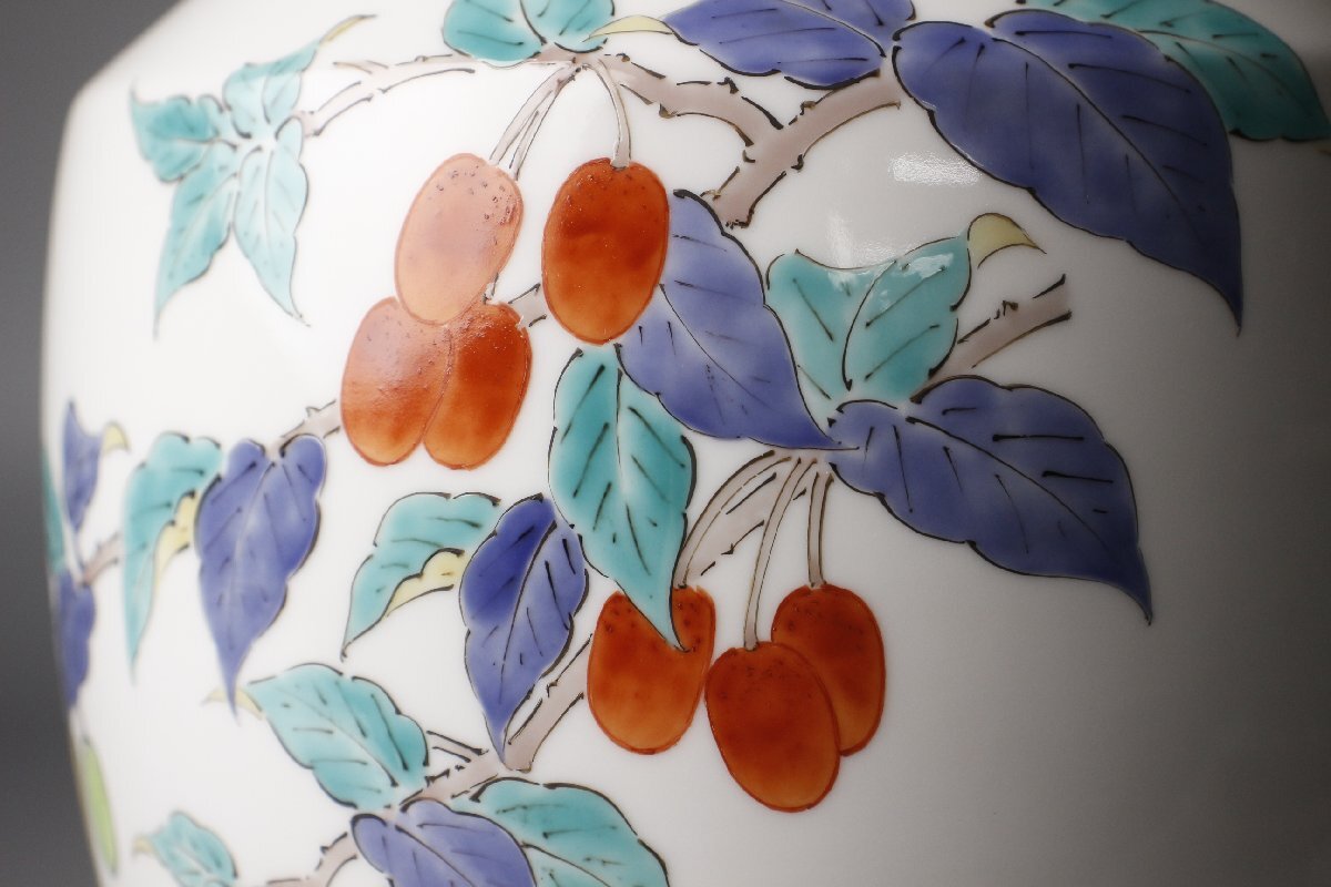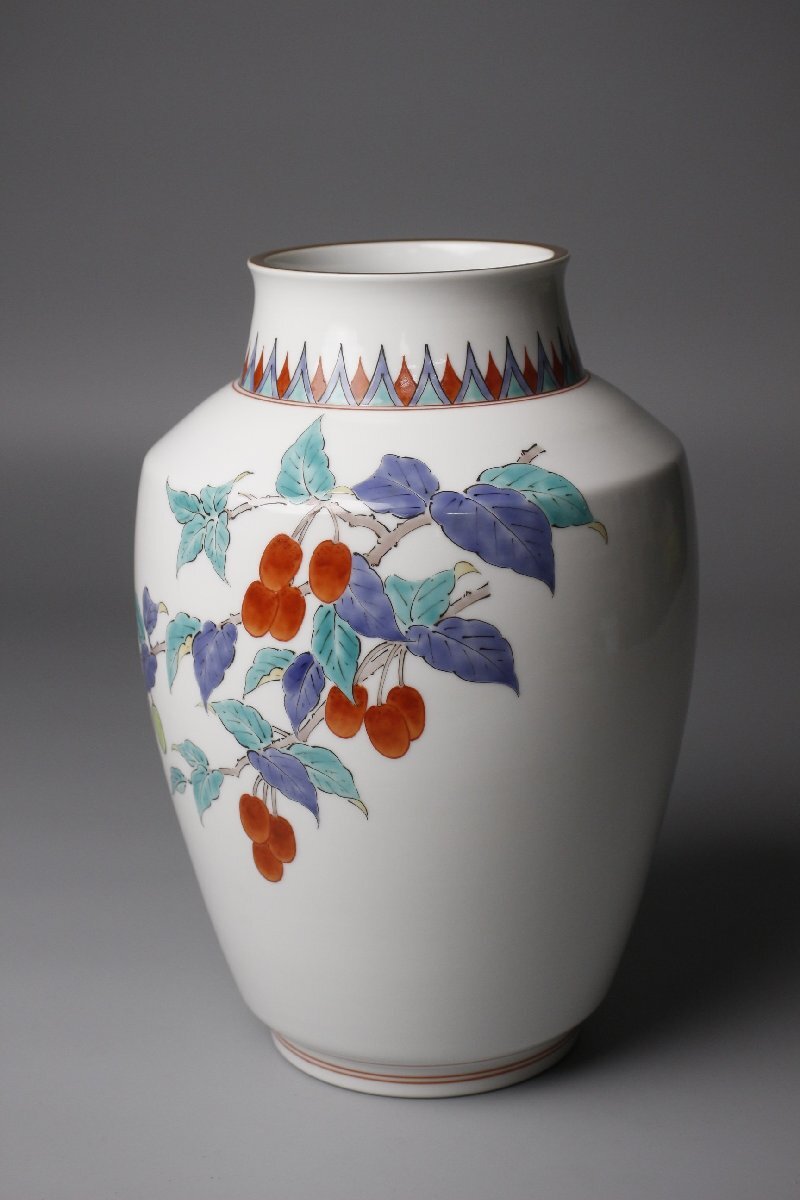 【LIG】本物保証 十四代酒井田柿右衛門 本人作 濁手 ぐみ文花瓶 22㎝ 花器 共箱 美品 [.QOI]25.10