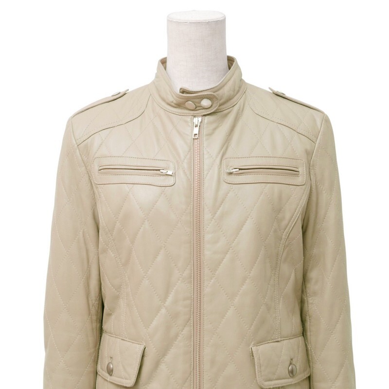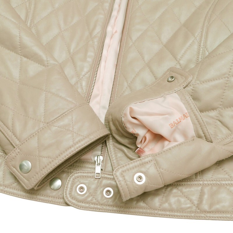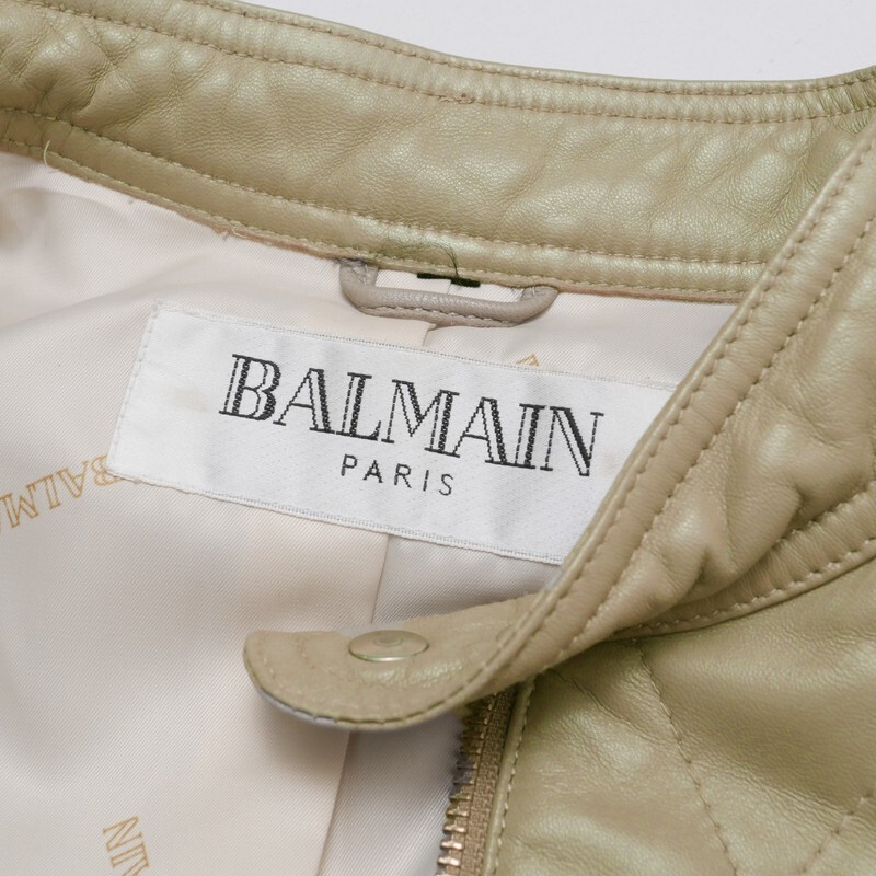 | TJ6695★BALMAIN バルマン 羊革 キルティング レザージャケット グレージュ M相当 ラムレザー スタンドカラー ジップアップ | |||
