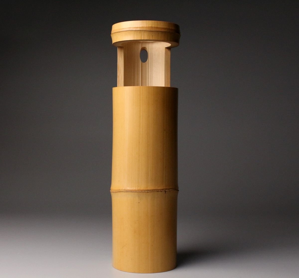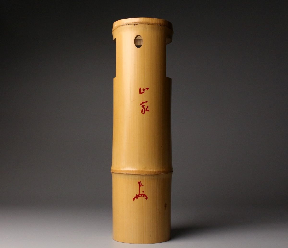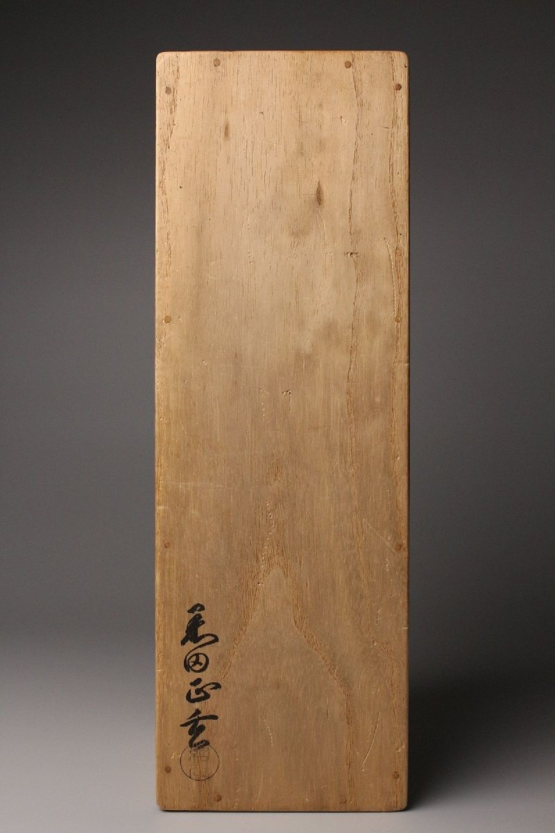 [.WR]25.11 25110921A* * * 商品詳細 * * * ここでしか出逢うことのできない唯一の美をご紹介させて頂きます。 黒田正玄作 一重花入 銘「山家」表千家即中斎書付箱 千家十職の中でも花所において名高い黒田家の流れを汲む、正玄の手による一作です。 竹の自然な姿を生かした一重花入は、素朴さの中に確かな品位と緊張感を宿し、まさに茶の湯の精神「侘び寂び」を体現しています。銘「山家」が示すように、山里の静けさや自然の息づかいを映した趣深い作品です。 さらに、表千家 即中斎宗左による書付箱を伴い、花押在判の確かな証をもつ由緒正しき花入。 竹の節目や肌理に宿る時の風合いが美しく、花をひと枝添えるだけで、空間に格別の静謐をもたらします。 ■商品内容/ 花入、書付箱 ■サイズ/横8㎝×高30.5㎝ 箱:横11㎝×高12.5㎝×奥行33㎝ ■状態/ スレ、小傷、汚れ、割れ、箱にスレ、傷、汚れがございます。 ※写真にてご確認、ご了承の上ご入札下さい。