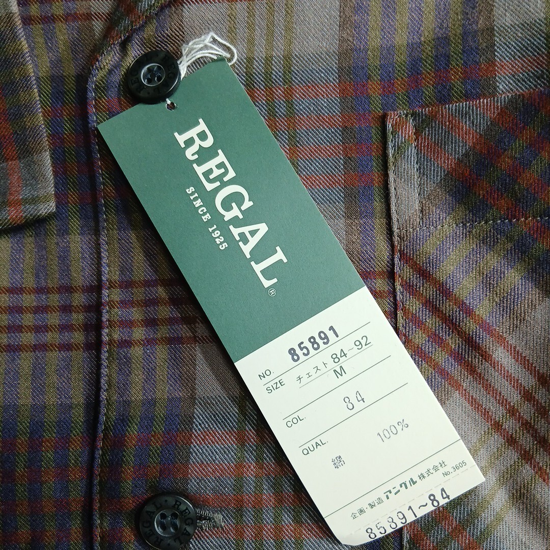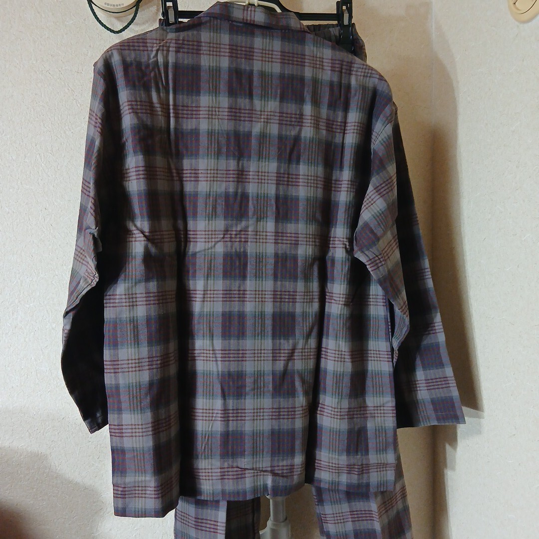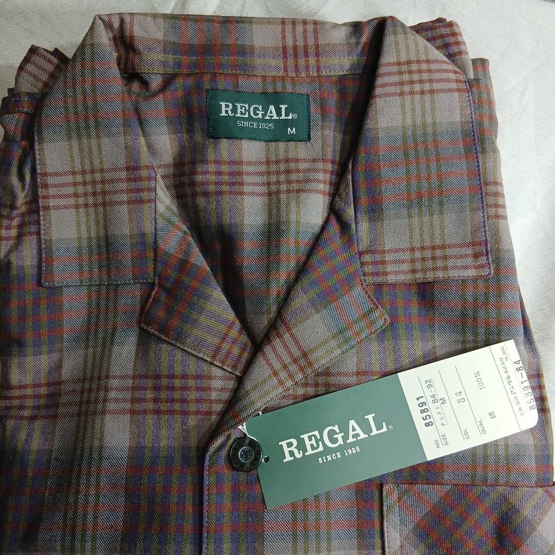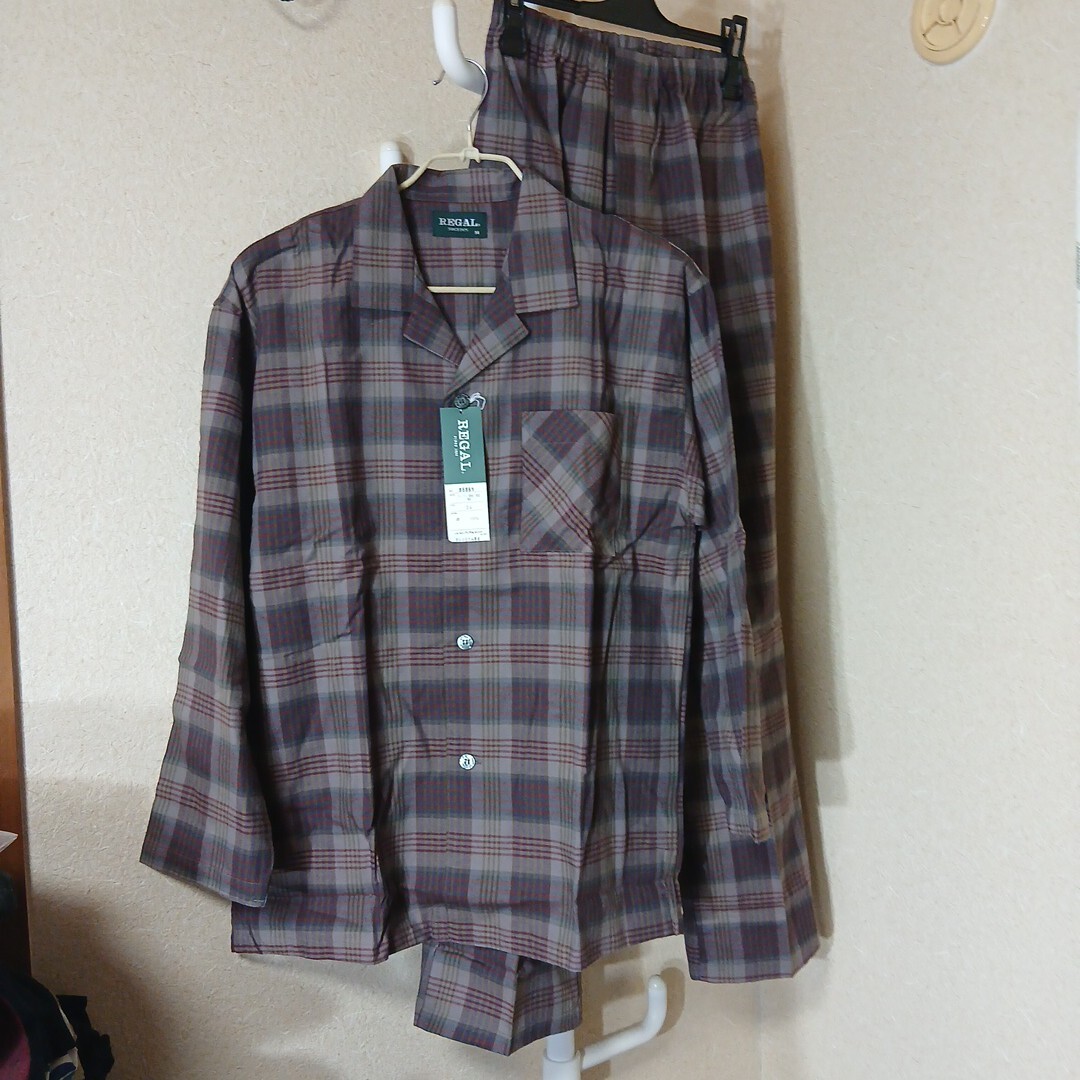 リーガル(アングル)のパジャマです。サイズはMで、チェスト84~92センチです。素材は、綿100%です。長袖で長ズボンで前開きです。未使用ですが自宅保管品です。