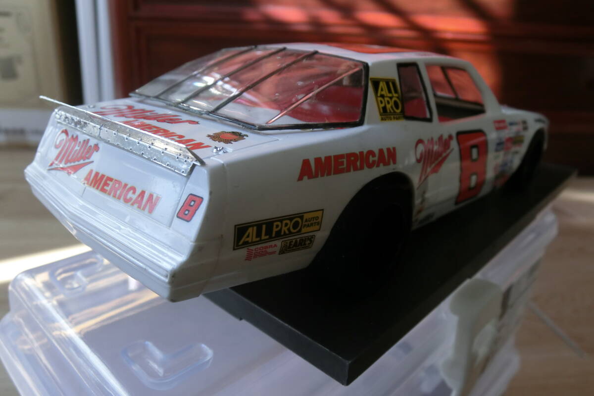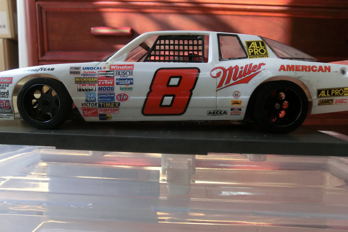 モノグラムモンテカルロ、ミラーになります。デカールはパワースライドデカール。ブルーTバー新品。ロングメインシャー新品(通常厚さ1.2ミリなのですが輸出用1.5ミリ使用しています)。サブフレーム新品、フロントシャフトカーボン、フロントベアリング2個新品、サイドマウントステー新品(標準サイズより10ミリロングです)。ポインターモーター使用。リヤタイヤは一皮削ってあります。ボディーは大きなダメージは有りません。中古品、古い物なのでノンリターンノンクレームでお願いいたします。(メインシャーシーは新品ですが少し汚れていたのでピカールでみがきました)台座付属いたしません。