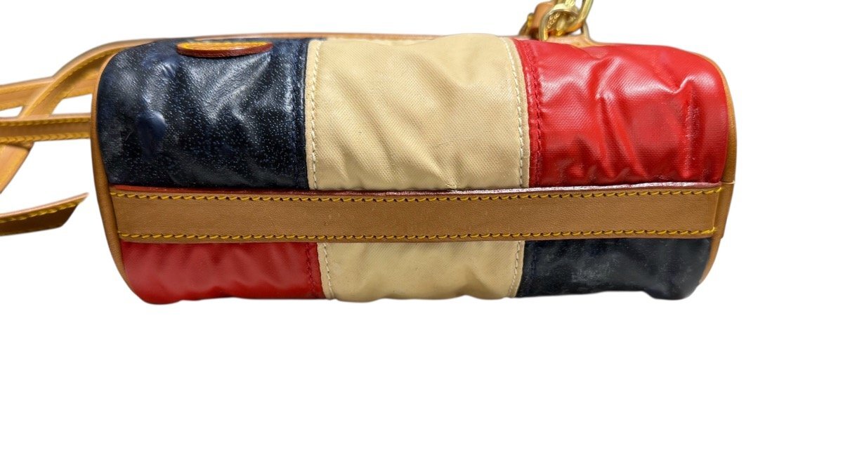 | ご覧いただきありがとうございます! 【ブランド】 ハンティングワールド 【商品名】 ショルダーバッグ ハンティングワールドのショルダーバッグです。ミニサイズが可愛らしいバッグです♪トリコロールカラーがポイントです! 【素材】 レザー×バチュー 【サイズ】 横18㎝ 縦10cm 【コンディション】 ランク『A』 補足:ほぼ使用感はないですが、保管期間が長かったのか、表面が白っぽくなっている部分があります。