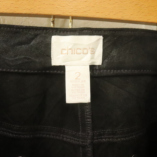 商品名 N516 2000年代製 CHICOS チコズ シャイニー ポリエステルパンツ■00s 表記サイズ2 レディース 黒 フェイクスウェード ストレッチ 古着 90s