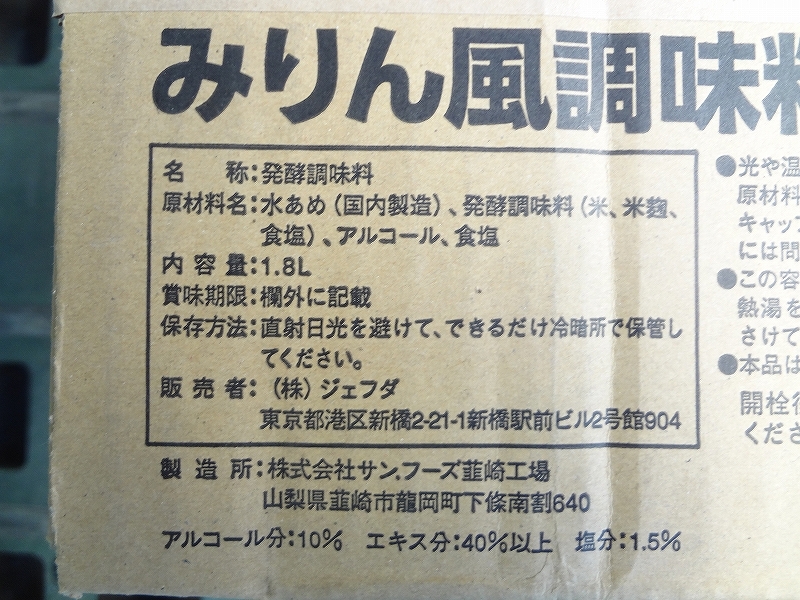 | 商品名 | Kロお1068 未開封 新品■JFDA ジェフダ■みりん風調味料 1.8L×6本入■賞味期限 2027.1■ペット詰 業務用 大容量 厨房用 キッチン用品 食品 |