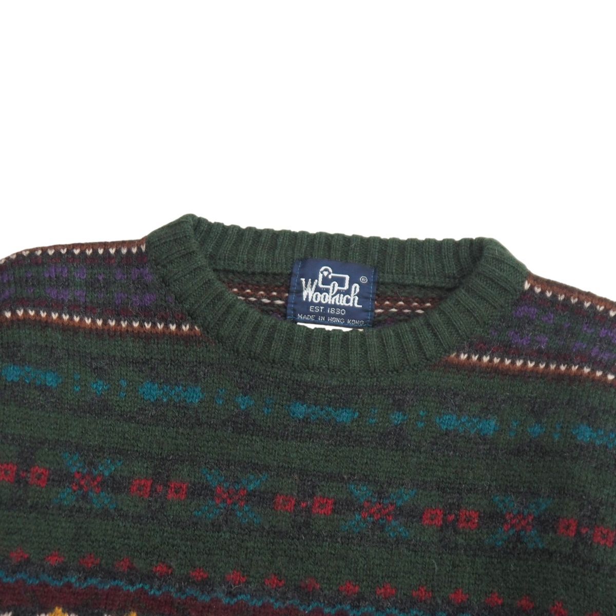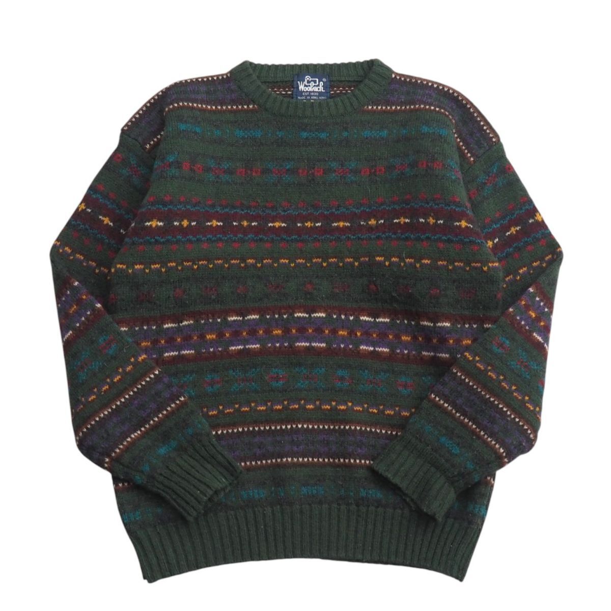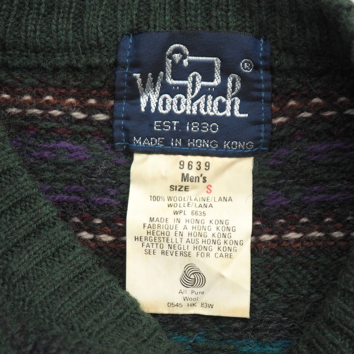 | TI6254▽80s ヴィンテージ WOOLRICH/ウールリッチ メンズS フェアアイル柄 クルーネック ニット セーター グリーン系 | |||