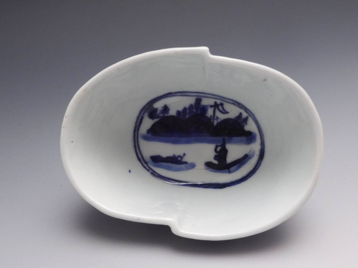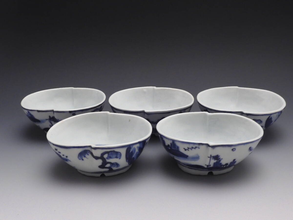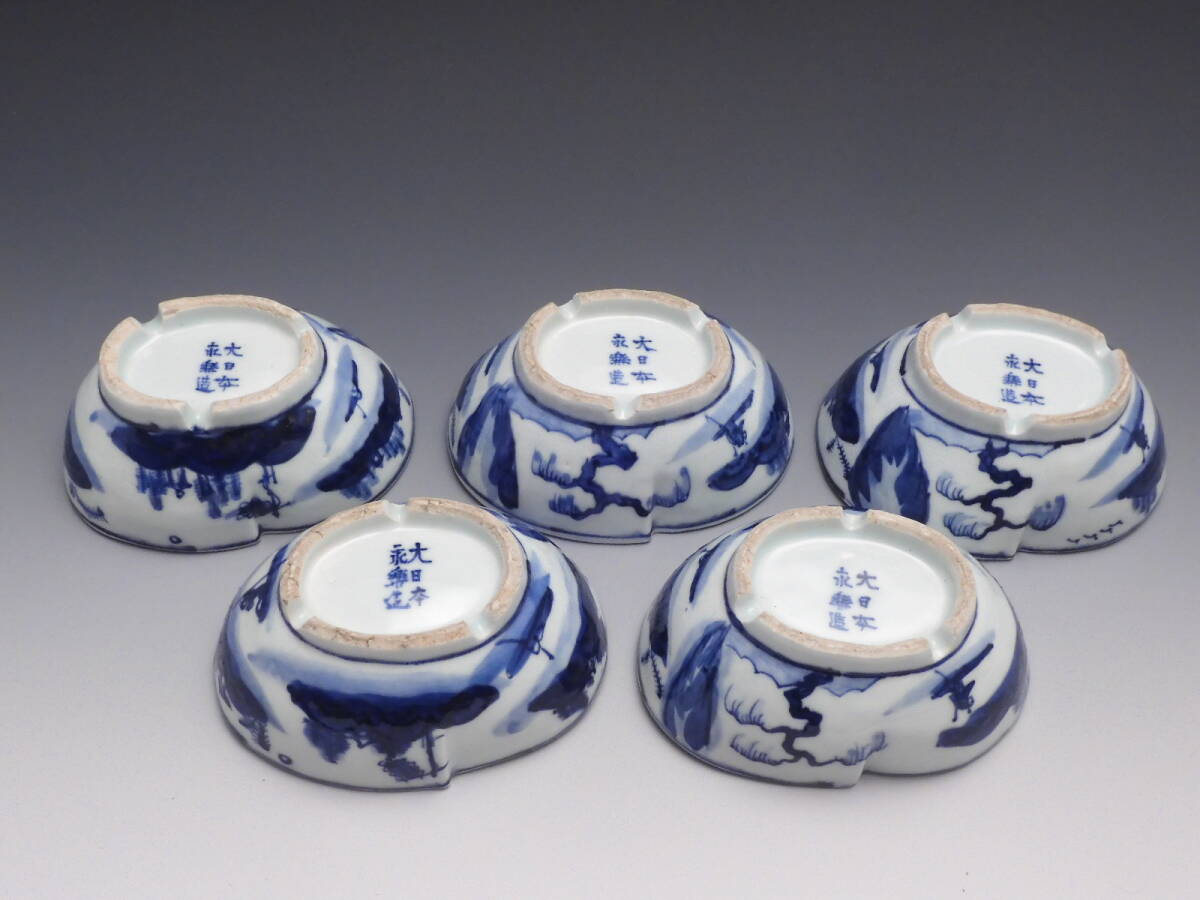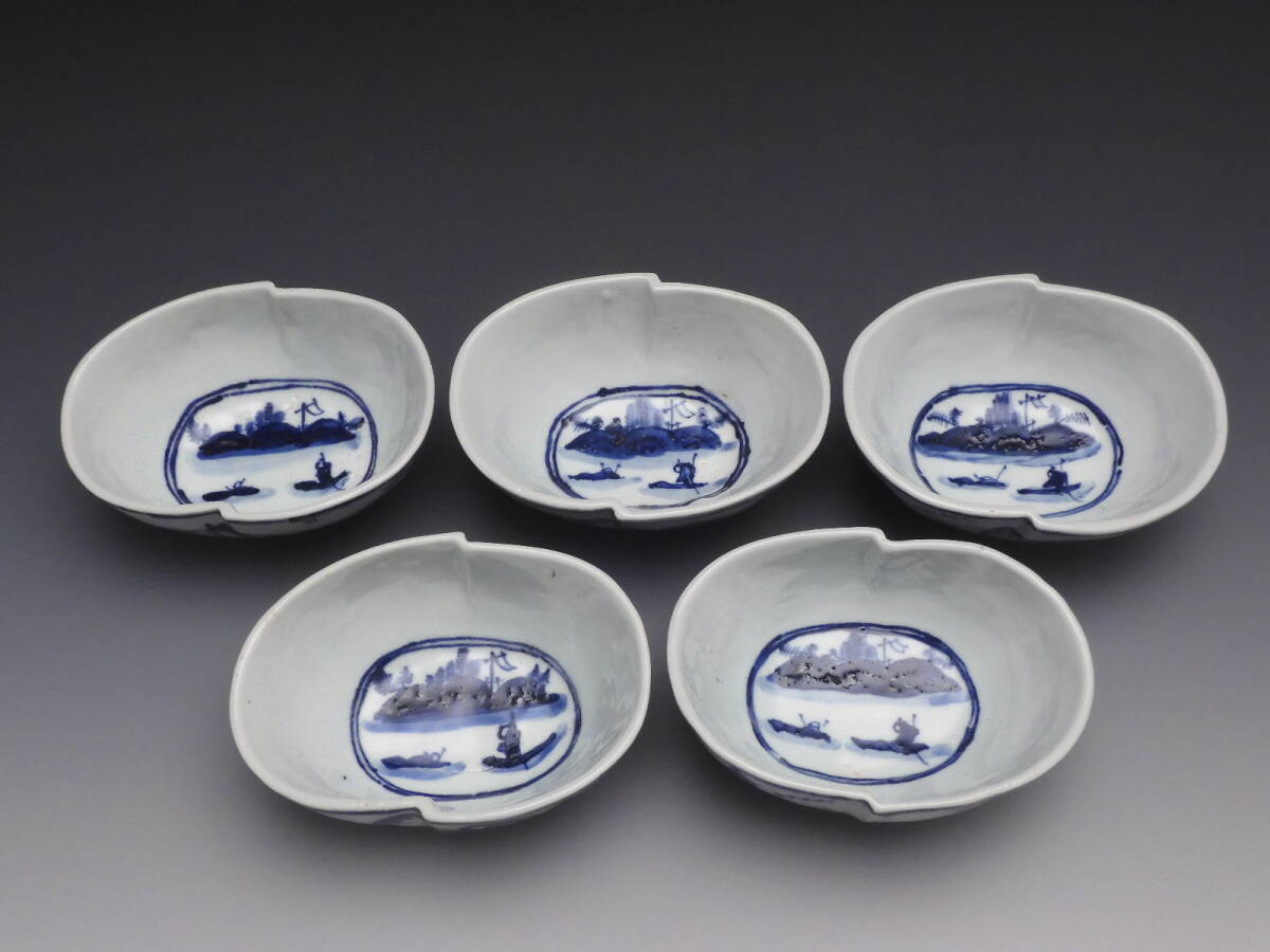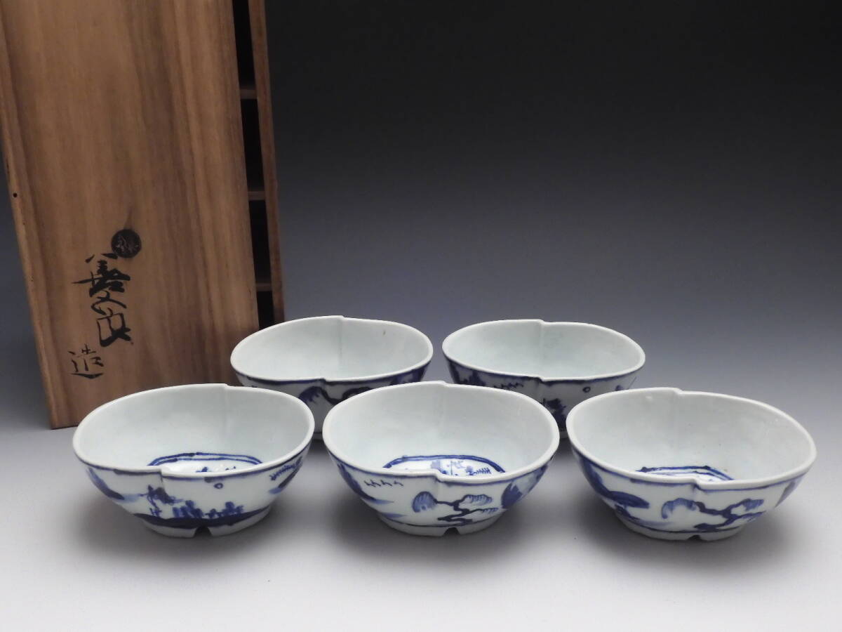 | ○梗○千家十職 永楽 善五郎 造 古染付 人物山水図 鉢 向附 5客 14cm 懐石 無傷 共箱 本物保証 A6◇ |