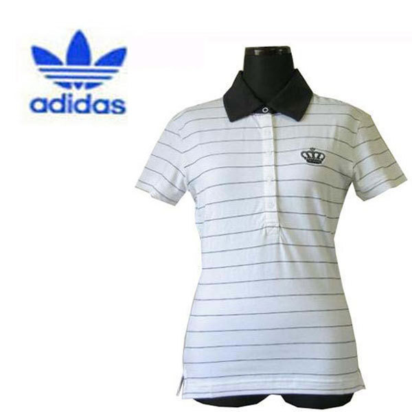 adidas(アディダス)Originals レディース ストライプポロシャツ シロ/クロ(S)です。 ■素材 コットン95% スパンデックス5% ■サイズ 身幅約42cm 丈約54cm ■特徴 クラウン・アディダスロゴ刺繍の爽やかな半袖ポロ! ボディサイドのカットインで、貴女のアクティブな活動をサポート! USAアディダスOliginalsシリーズ。スパンデックス混ですので多少伸び縮みします。 | ||||||