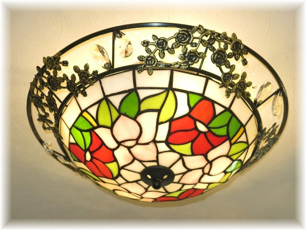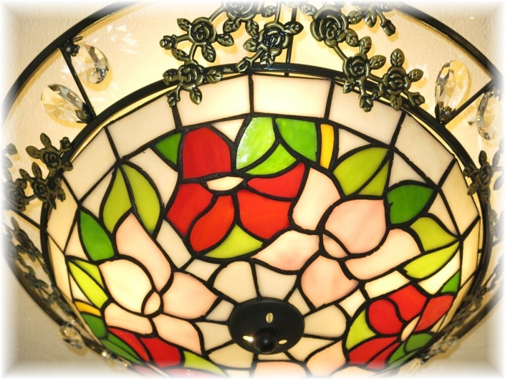 | 商品説明 | ![]() 【送料無料!】新品 ガラス工芸品 豪華! ステンドグラス シーリングライト ☆広角LED電球4灯(¥5600-相当)お付けいたしまして驚きのプライス! 【送料無料!】新品 ガラス工芸品 豪華! ステンドグラス シーリングライト ☆数種類の色・形が違うガラスを職人が1枚ずつつなぎ合わせ完成したステンドグラスの天井照明です ☆外枠は金属製で花の模様を施し、クリスタルガラスの飾り物で仕上げております ☆照明本体は調光にも対応しております ※調光ご希望の場合、調光対応LED1個¥200-アップと汎用調光器(Panasonic製LED用調光器推奨)が必要です ☆高級感が有り消灯時もご家庭のインテリアとして最適です♪ ☆サイズは直径約40cm 天井より下に約19cmです ☆手作りLEDステンドグラス天井照明を超特売価格で是非この機会に! ☆付属電球・・・ 口金E26暖色広角LED(明るさ40ワット・消費電力4ワット)4灯(¥5600-相当) ☆白色LEDご希望の場合はご注文後お申し付け下さい ☆商品画像は暖色LEDを装着し撮影しております ☆取り付けに関しましては引掛けシーリング対応です ![]() |