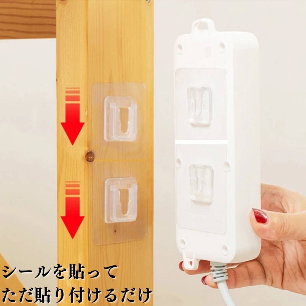 【お得なセット販売】こちらは5個セットの商品ページです。3個(600円)の販売もございます。【浮かせる収納の大活躍】キッチンの調理器具掛けをはじめ、リモコンや小物掛けとしても大活躍浮かせて小物やリモコンを収納できるためスッキリした空間造りができる。使い終わったらフックに掛けるだけで、物を無くすリスクも軽減。【使用できる面】凸凹のない滑らかな面である板壁、家具や机(木・スチール製)、ステンレス、冷蔵庫や洗濯機などの金属塗装面、大理石、タイル、ガラス、プラスチック、吸着面が真空を保てる場所であればご使用いただけます。防水性も高く洗面台やお風呂場など湿気ぽい壁にも使えます。【使用方法】貼りたい箇所の汚れを拭き取り、フック裏面の保護フィルムを剥します。空気を抜くようにしっかり壁に貼り付けます。1.使用したい箇所をきれいに掃除2.フック裏面のフィルムを剥がす3.空気が入らないように貼り付ける※貼り付け後24時間程度時間をおいてから掛け始めてください。【商品詳細】・内容:5ペア(セット)・サイズ:6cm×6cm・材質:ポリ塩化ビニル【注意事項】・海外製品のため多少の傷や汚れ等ある場合がございます。・送料の都合上箱なし、簡易包装での発送となります。・強力粘着ですので、壁紙(クロス)に貼り付けはオススメしません。紙ごと取れる恐れがございますのでくれぐれもご注意ください。コメントなしでの即購入OKです。おまとめ買いでお値引きさせていただきます。お気軽にコメントください。壁掛け ホルダー 5セット 3セット 収納 浮かせる リモコン 延長コード ウォールフック 強力 粘着 シールフック 目立たない 穴 開けない ペット 電源タップホルダー 写真立て エアコン テレビ おしゃれ