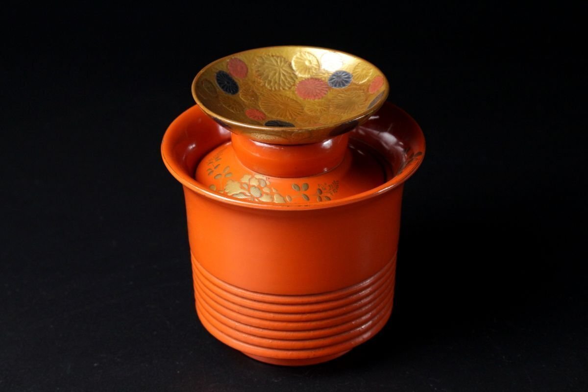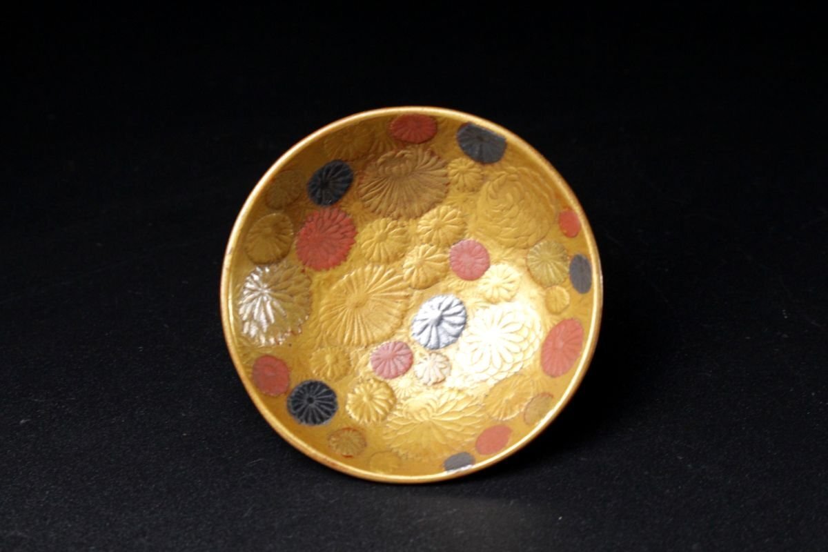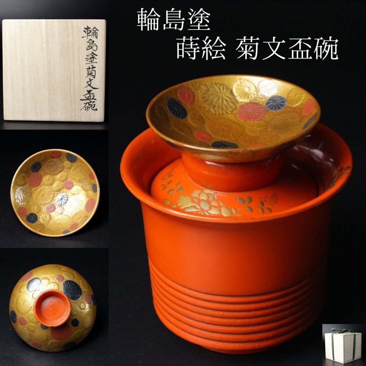 [.I]25.08 25082949 T* * * 商品詳細 * * * ここでしか出逢うことのできない唯一の美をご紹介させて頂きます。 輪島塗 蒔絵 菊文盃碗 深みのある朱漆の上に精緻に描かれた菊尽文は、 輪島塗ならではの上質な技と美意識を映し出します。 盃に酒を注ぐと、まるで菊の花が水面にそっと浮かぶかのように見え、 飲む者の目と心を同時に楽しませる雅趣を醸し出します。 滑らかな手触りの漆肌は、手に取るたびに温もりを感じさせ、 盃そのものが酒席に落ち着きと華やぎを添えます。 蒔絵の菊は、季節の移ろいをも感じさせ、 日常の酒のひとときに静かで格調ある趣を添える逸品です。 輪島塗の伝統技術と茶道・酒席の雅を兼ね備えた本品をこの機会に是非ご堪能下さい ■商品内容/ 盃碗、箱 ■サイズ/横10㎝×高10㎝(納めた状態) 盃:横7㎝×高2.5㎝ 箱:四方12.5㎝×高12.5㎝ ■状態/ 経年によるスレ、傷、汚れ、ごく僅かな欠け 箱にスレ、小傷、汚れがございます。 ※写真にてご確認、ご了承の上ご入札下さい。