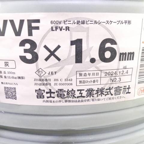 | 未使用 富士電線 VVFケーブル 3×1.6mm ビニル絶縁ビニルシースケーブル 平型 100m 2024年12月 | |