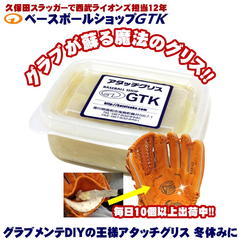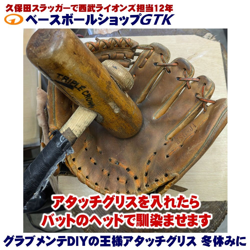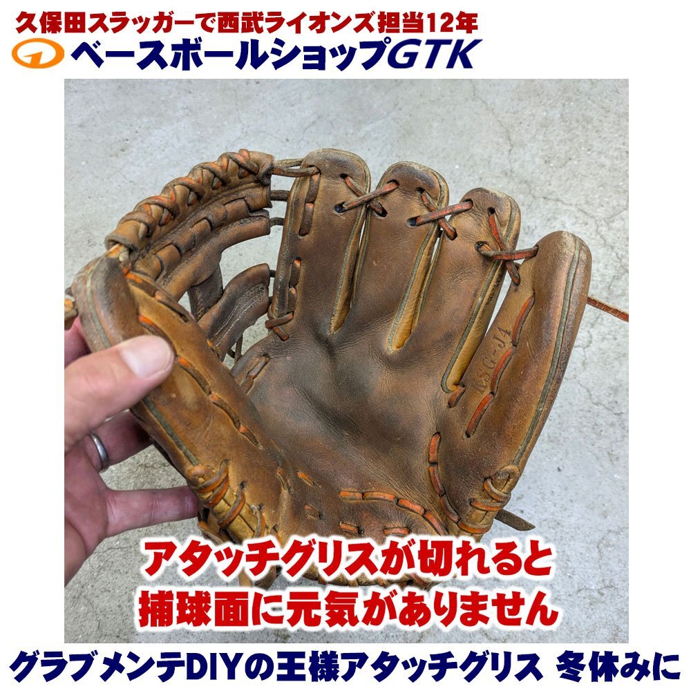 1,650円の商品です。即購入したい場合は「今すぐ落札」ボタンで落札してください。システム上1,650円スタートが出来ませんのでこうしています。 【使用用途】 グラブの捕球面と平裏面(手の平が当たる面)の2枚の革を繋げるグリスです。 グラブを使い込んでいくとグリスが減り革と革の密着が弱まり浮き上がるようになります。 この状態になるとボールを捕ろうとグラブを握った時に平裏の革は動きますが 捕球面の革は動きません!!! は、大袈裟ですがコンマ何秒か遅れが生じますし、うまく力が伝わらず意図した動きにならない場合があります。 こうなったら「アタッチグリス」の出番です。グラブの性能がかなり回復し、元の捕り易いグラブへ戻ります。 新品のグラブには100%入っております。グラブのリフレッシュに最適なアイテムですのでぜひご利用下さいませ。 なお、グラブの分解に自信が無い方は当店にて加工を行いますのでお問い合わせ下さい。 【内容量】 8cm×6cm×3cmの容器に入っています。重量は容器込みで100g前後です。多少前後しますのでご了承下さい。 グラブや硬式ボールは付属しませんのでご了承ください。 日曜・祝日・祭日は定休日のため発送出来ません。翌営業日に発送しますので予めご了承ください。 配送方法は宅配便かメール便です。 それではノークレーム・ノーリターンでよろしくお願いいたします。 | |
