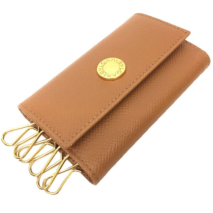 | PRコメント | ブルガリより男女兼用でお使いいただけるキーケースが美品で入荷! 丈夫でキズのつきにくいグレインレザーと落ち着きのあるキャメルブラウンは飽きずに末永くお使いいただけます。 仕様:ホック開閉、6連、差込ポケット1 |