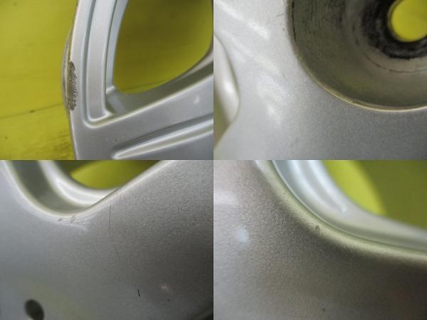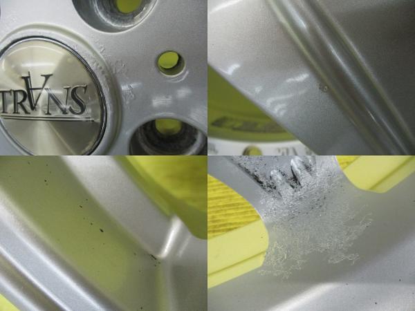 | ホイール詳細 | ホイール:TRANS サイズ:6.5J×15 インチ +48 PCD:5H114.3 カラー:シルバー CAP:有り 専用ナット:無し 状態 ガリ傷 :2本 腐食 :有り ディスク面傷 :有り 使用感 :有り コメント:2本ガリ傷があります。 また、4本共に腐食による塗装の浮きが見られます。 その他に、4本共に小傷や線傷、飛び石傷や打痕傷、ナットホールの傷等があり、使用感がかなりあります。 中古ホイールになりますので、小傷や線傷、飛び石傷や打痕傷、ナットホールの傷等は予めご了承下さい。 |