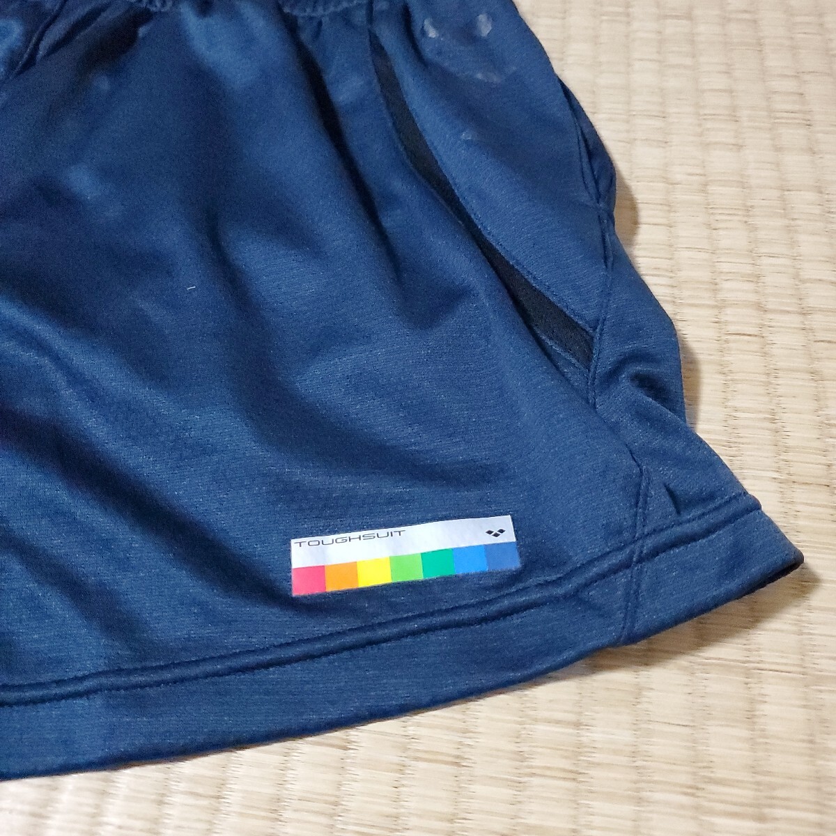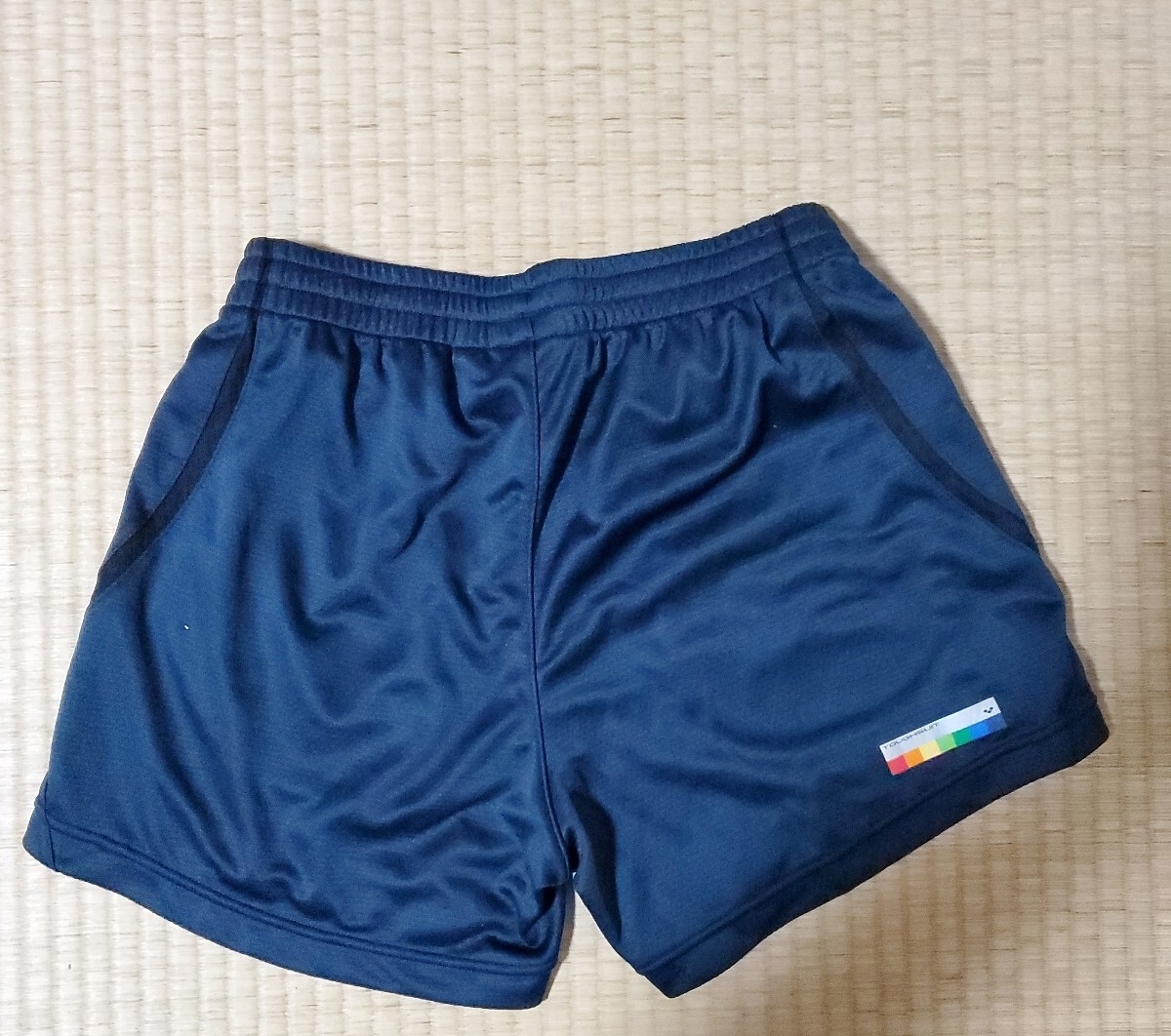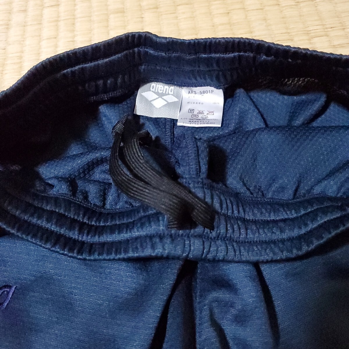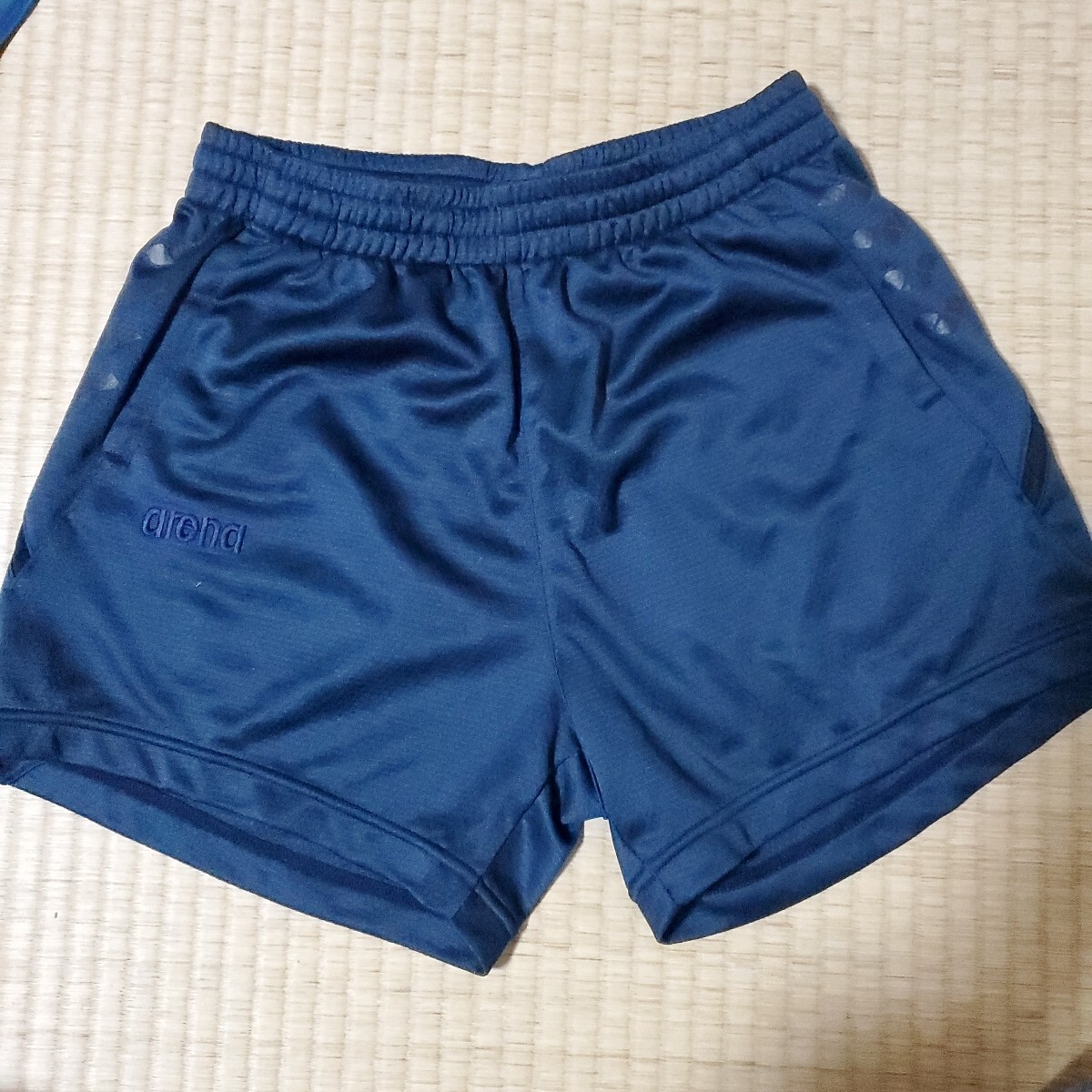 arena のショート丈の短パンです。サイズはS。試着程度で、ほとんど穿いていないです。ウエストに紐あり、両サイドポケットあり。ブリーフのMサイズを当ててますので、参考にしてください。ホームクリーニング済み。