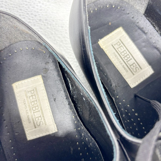ご覧いただき、ありがとうございます。 オシャレで高級感のあるPEBBLES TOKYOのビジネスシューズです。 デザイン性:機能性共に定評のある商品です。 1足押さえてあるとファッションの幅も広がり大活躍するお勧めの商品です。 中古品のため、スレや傷、ヨゴレ等ありますが、その分お値打ちにしております。詳しい状態は画像でご確認ください。 商品のサイズについて 表記サイズ 25.0EEE アウトソール全長 約26.8cm 全幅 約9.2cm (素人採寸) ●状態①「外観」 履きジワ、着用に伴う擦れ、傷がございますが、着用に支障はございません。くわしくは画像で確認ください。 ●状態②「ソール・インナー」 インソール内残っています。 ●その他・付属等なし、シューズキーパーは撮影用です。 | |||