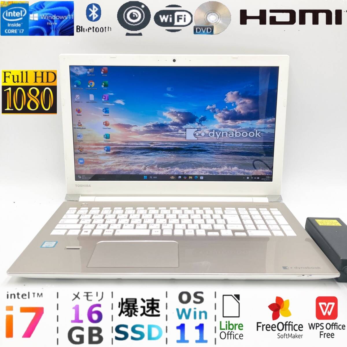 | 【配送商品の中身】 □ノートパソコン本体 (SSD、メモリ内蔵済み) □ACアダプタ □延長保証パンフレット 【スペック】 ■メーカー・型番:東芝 T75/CG サテンゴールド ■インストールOS:最新版Windows11Home 64ビット ■CPU:Core i7-7500U第7世代(省電力ハイモデル) ■メモリ:DDR4:16GB(8GBx2) ■容量:爆速SSD:240GB ■光学ドライブ:DVD-RW ■装備 ●15.6型ワイド(16:9)FHD 広視野角 Clear SuperView TFTカラー液晶 (IPS〈In Plane Switching〉方式) (省電力LEDバックライト) 1,920×1,080ドット ●無線LAN対応 IEEE802.11a/b/g/n/ac準拠 有線LAN対応 ●USB3.0x2、2.0x2 ● HDMIポート搭載 モニターに出力して大画面での作業や動画視聴も可能 ●内蔵オンキョー製ステレオスピーカ ●Webカメラ搭載 ●Bluetooth搭載 ■動作確認