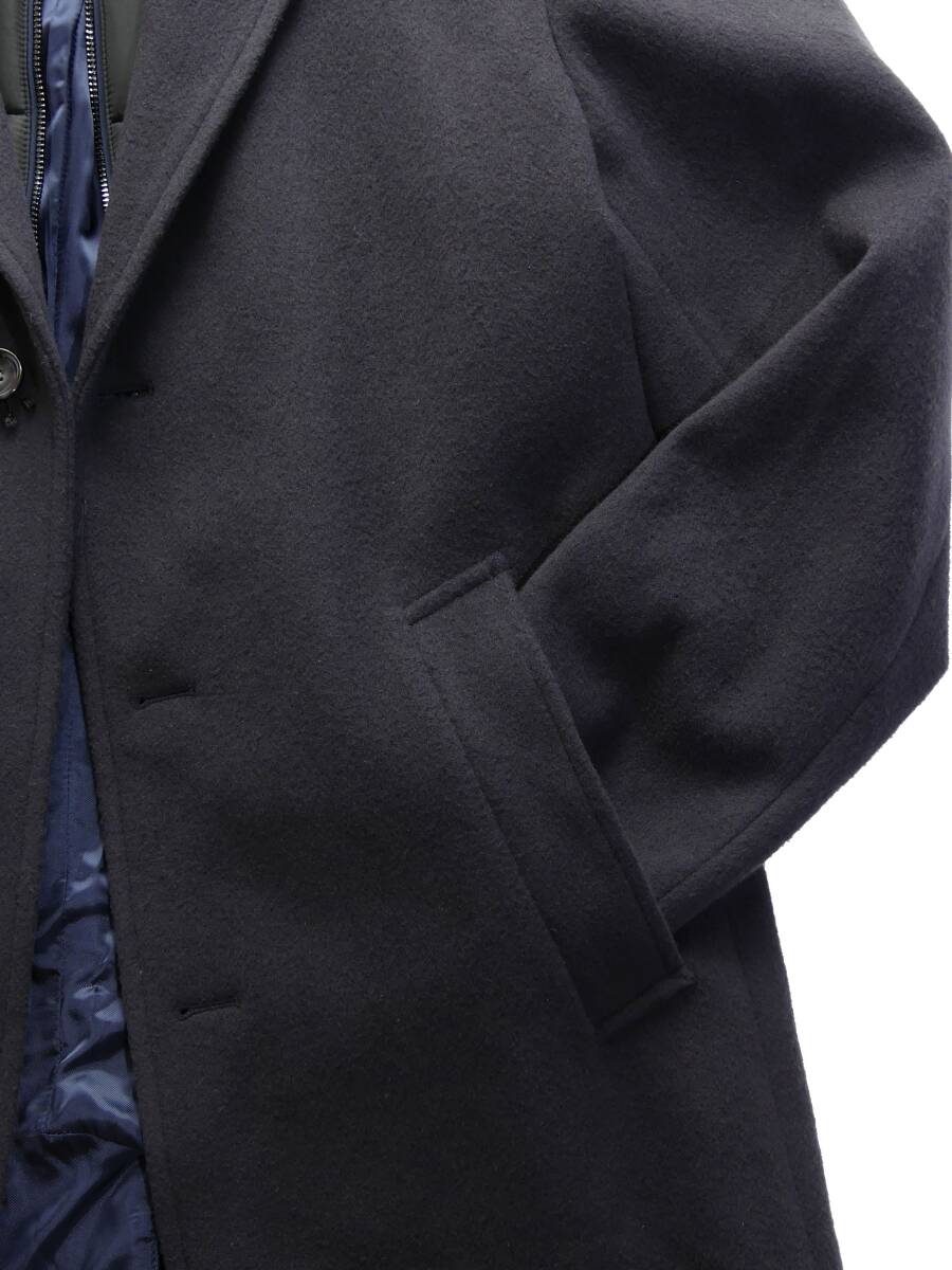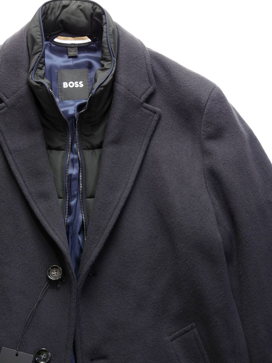 HUGO BOSS/ヒューゴ・ボス 防寒アタッチメント付。使える度もお洒落度も200%軽く柔らかフランネル濃紺チェスター ヒューゴ・ボス直営店購入の正規品新品です