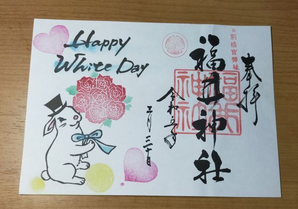 ◆福井神社(福井・福井・福井城)◆御朱印「福井神社」 令和5年(2023年)3月 見開き 「ホワイトデー」Ver |
