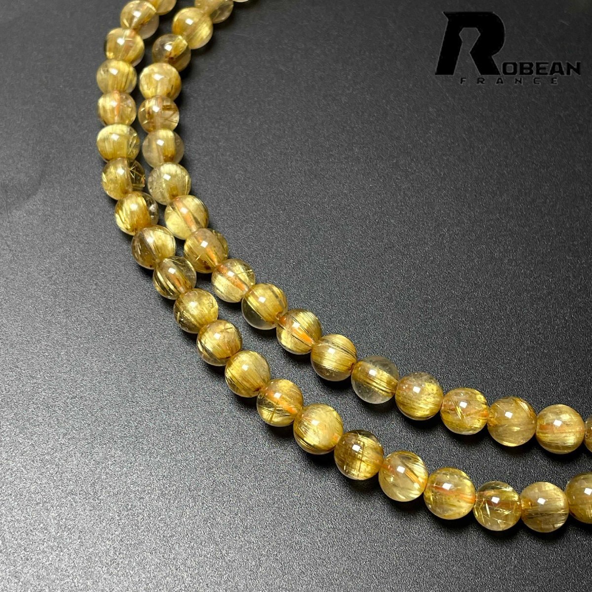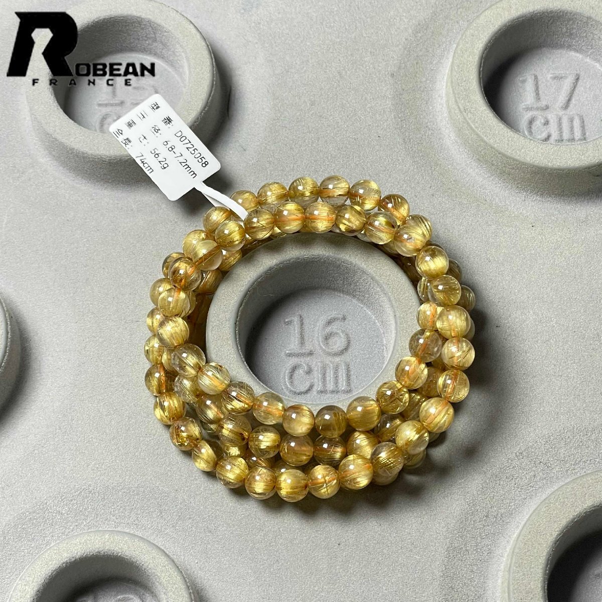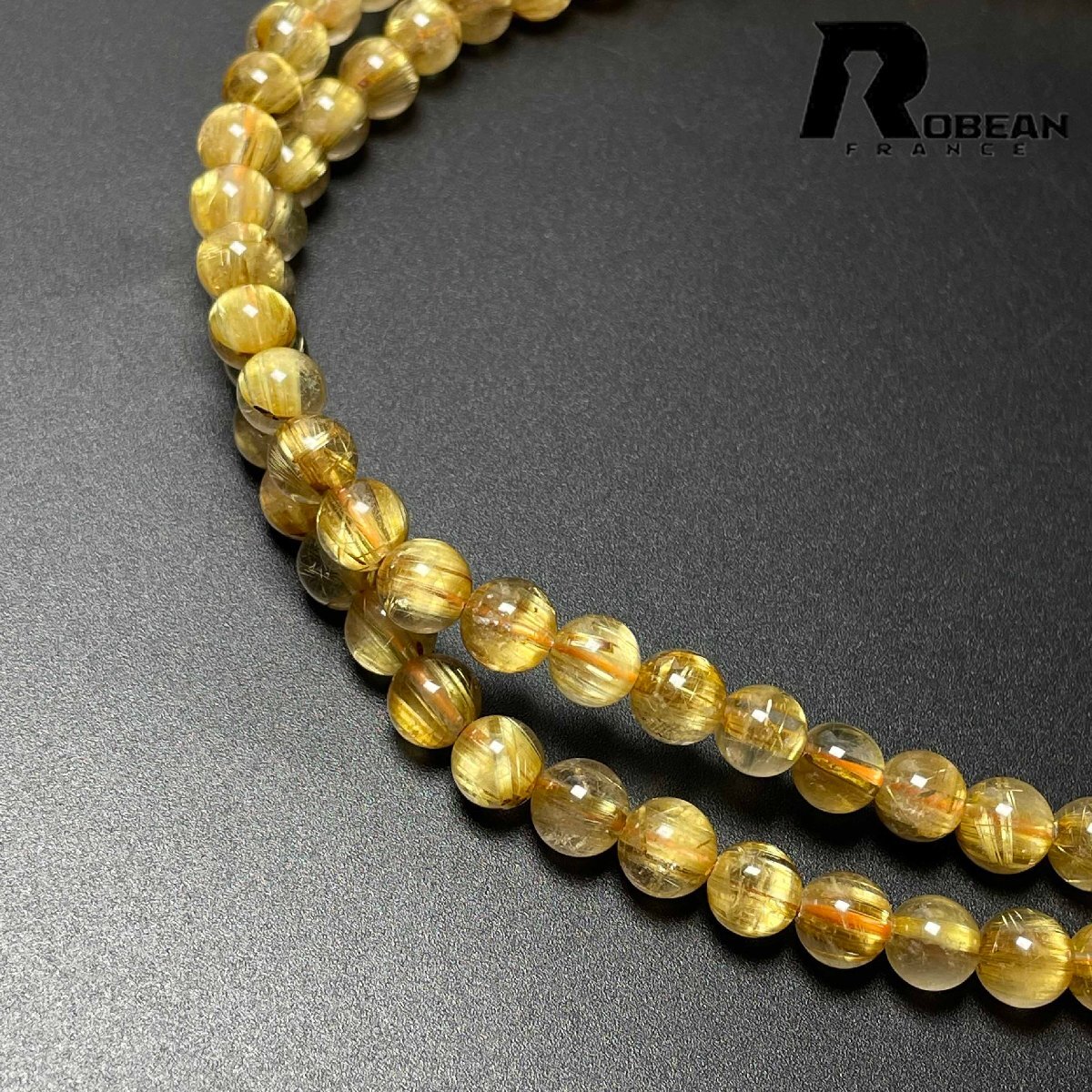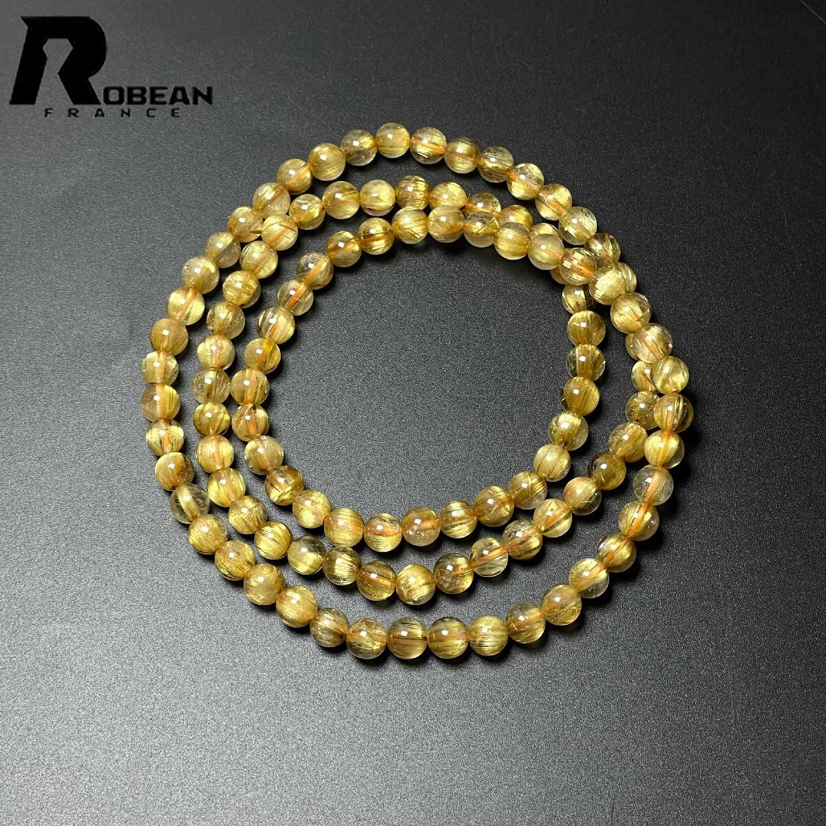 希少 EU製 定価161万円★ROBEAN・タイチンルチル★黄金針水晶 ゴールド 金運 開運 4本巻きブレスレット パワーストーン 6.8-7.2mm D0725058