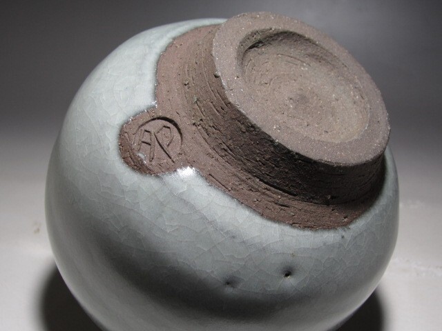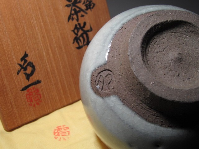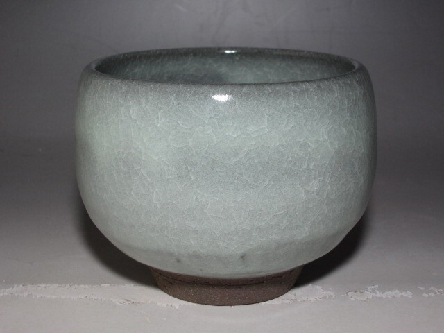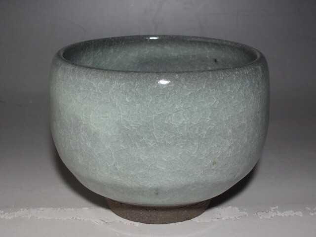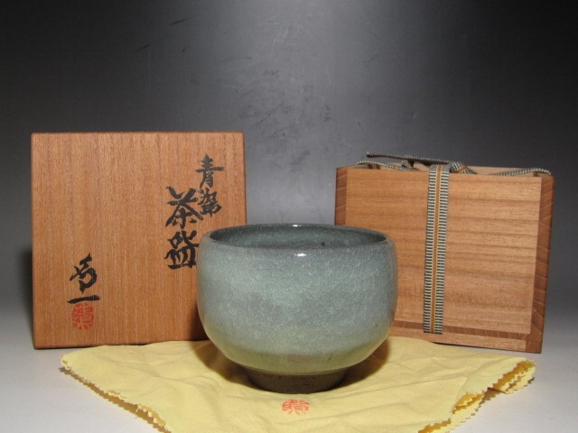 人間国宝清水卯一作の青磁茶碗です。 味わい深い景色の見事な出来栄えの逸品です。 【清水卯一(しみずういち)1926-2004】 京都出身の昭和後期-平成時代の陶芸家。 石黒宗麿に師事し、中国の鉄釉や柿釉を研究し作品を日本伝統工芸展で発表し注目された。 ブリュッセル万国博でグランプリなど海外でも評価された。 滋賀県志賀町に蓬莱窯を築く。 1985重要無形文化財(人間国宝)に認定された。 1986紫綬褒章を受章した。 サイズ 直径12cm/高さ8.8cm(多少の誤差はお許しください) 状態 一見して疵やヒビ・直しは見られません。 骨董品という事をご勘案頂き、時代経過のスレや、小さな傷がある場合があるかもしれませんのでご承知置きください。 | |||