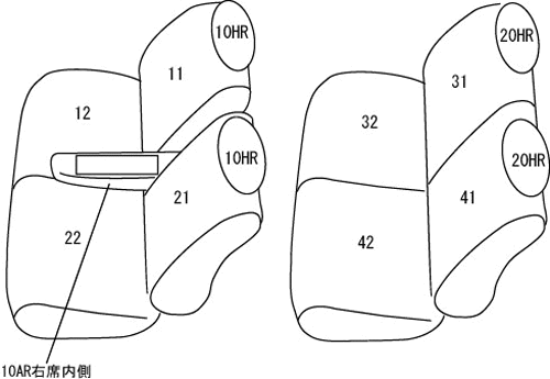 | 適合形状 | 運転席シートリフター(ドライビングサポートパック)有り ※運転席背もたれポケットx3 使用可 ※1列目助手席背もたれハーフカバー(バックテーブル使用可) ※カバーを装着することにより、助手席シートベルトの巻取りが鈍くなる場合があります |