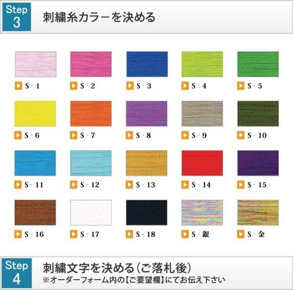 | 商品説明 ご注文方法 ‐簡単STEP‐ | 説明:会社名、チーム名、サークル名。ニックネームや個人名など。 ニーズに様々な形で表現できる刺繍! 当店のネーム刺繍は専用針で細かく打ちますので、仕上がりの艶やかさとクオリティが違います! STEP.1:名入れ商品を決める ※本商品は刺繍加工費の価格です。ご希望のウェアとご一緒にご落札下さい。 ↓ STEP.2:文字書体を決める ↓ STEP.3:刺繍糸カラーを決める ↓ STEP.4:刺繍文字を決める(ご落札後) ※ご落札後、オーダーフォーム内の【ご要望欄】にてお伝え下さい。 ★見栄えがいい文字数は8文字程度となります。 | お支払方法 | 1.簡単決算 2.代引き 3.銀行振込み (ゆうちょ銀行 楽天銀行 三菱東京UFJ銀行) ※三菱東京UFJ銀行につきましては弊社のシステム上、入金確認に時間を要しますので予めご了承下さい。 |
