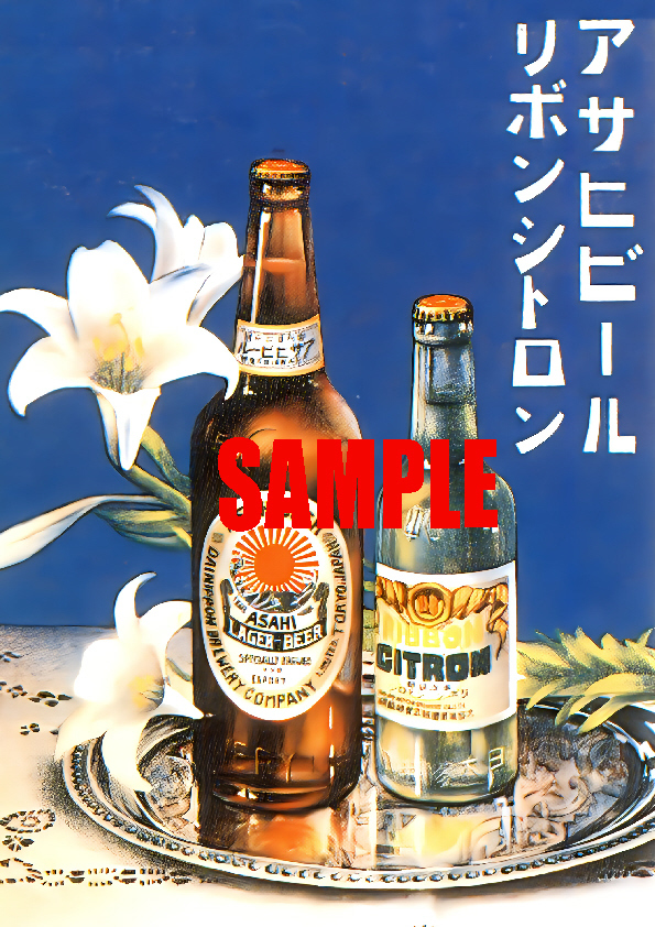 | 昭和初期/戦前(1926~1945)のアサヒビールの広告のレプリカ(複製品)です。 実際の商品には「SAMPLE」の文字はありませんし、画質も上質です。 材質は厚手の高品位マット紙、大きさはA4サイズ、ラミネート加工がしてあります。お手軽な価格でレトロな雰囲気を演出します。店舗のディスプレイや、お部屋、ガレージなどにいかがでしょうか? 額縁に入れても素敵です。 |