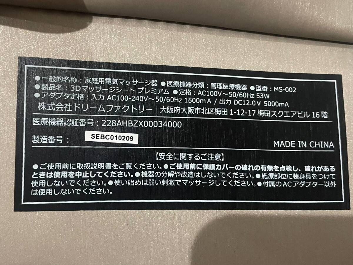 【メーカー名/商品名/型番】○DOCTORAIR ドクターエアー 3Dマッサージシート プレミアム ホワイトゴールド MS-002【状態】B 目立った傷や汚れ無し幅460×高さ1260(背部840)×奥行き120㎜(もみ玉部除く)
