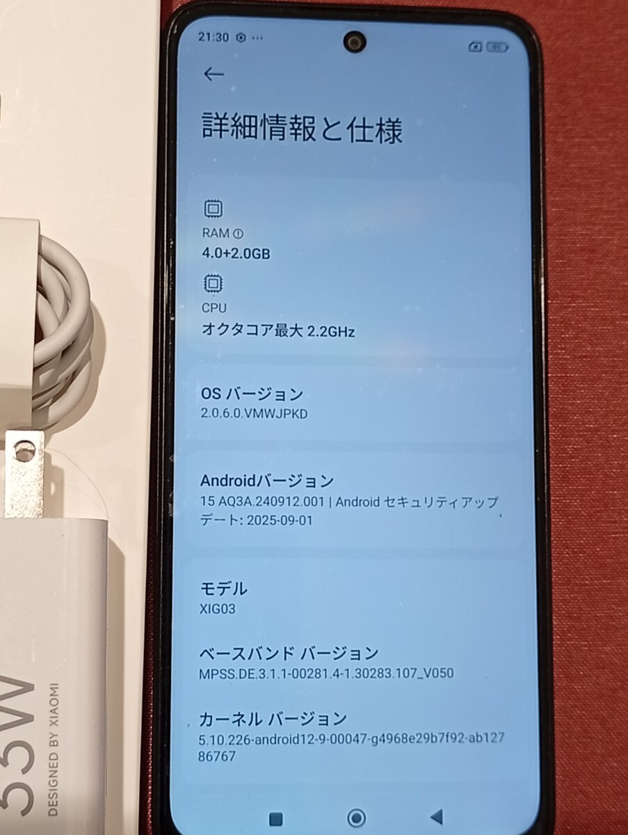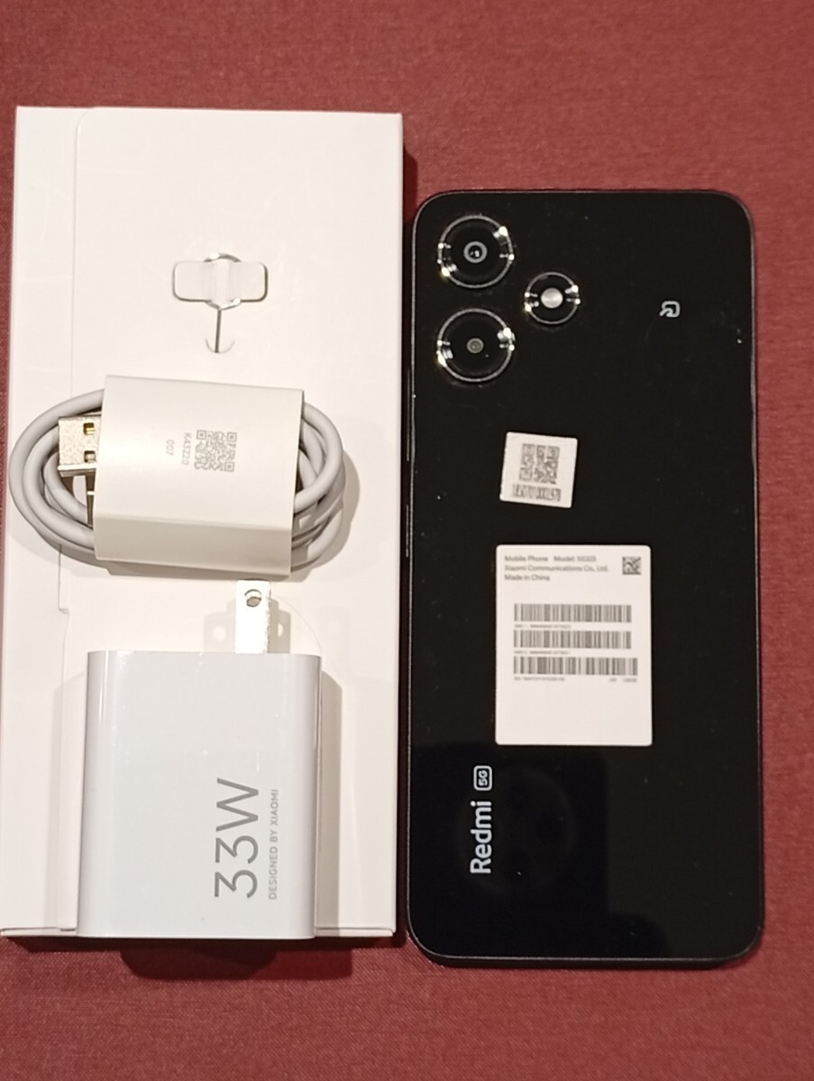元箱は無し。Redmi 14 付属の充電器hとsim,microSDケースの取り出しピンを、お付けします。予備用でしたので、バッテリーの充電回数は少ないと思います。